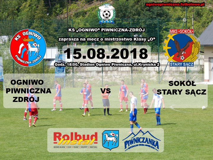 Już jutro (15 sierpnia) o godzinie 18:00 na stadionie przy ul. Krynickiej 2 w Piwnicznej-Zdrój rozegrana zostanie 2 kolejka ligi kręgowej. MKS Sokół Stary Sącz powalczy o punkty w Ogniwem Piwniczna-Zdrój. Zapraszamy wszystkich kibiców! 12 sierpnia w inauguracyjnym meczu nowego sezonu piłkarskiego 2018/2019 Ligi Okręgowej MKS Sokół wygrał na własnym stadionie z KS Tymbark 2:1 […]
