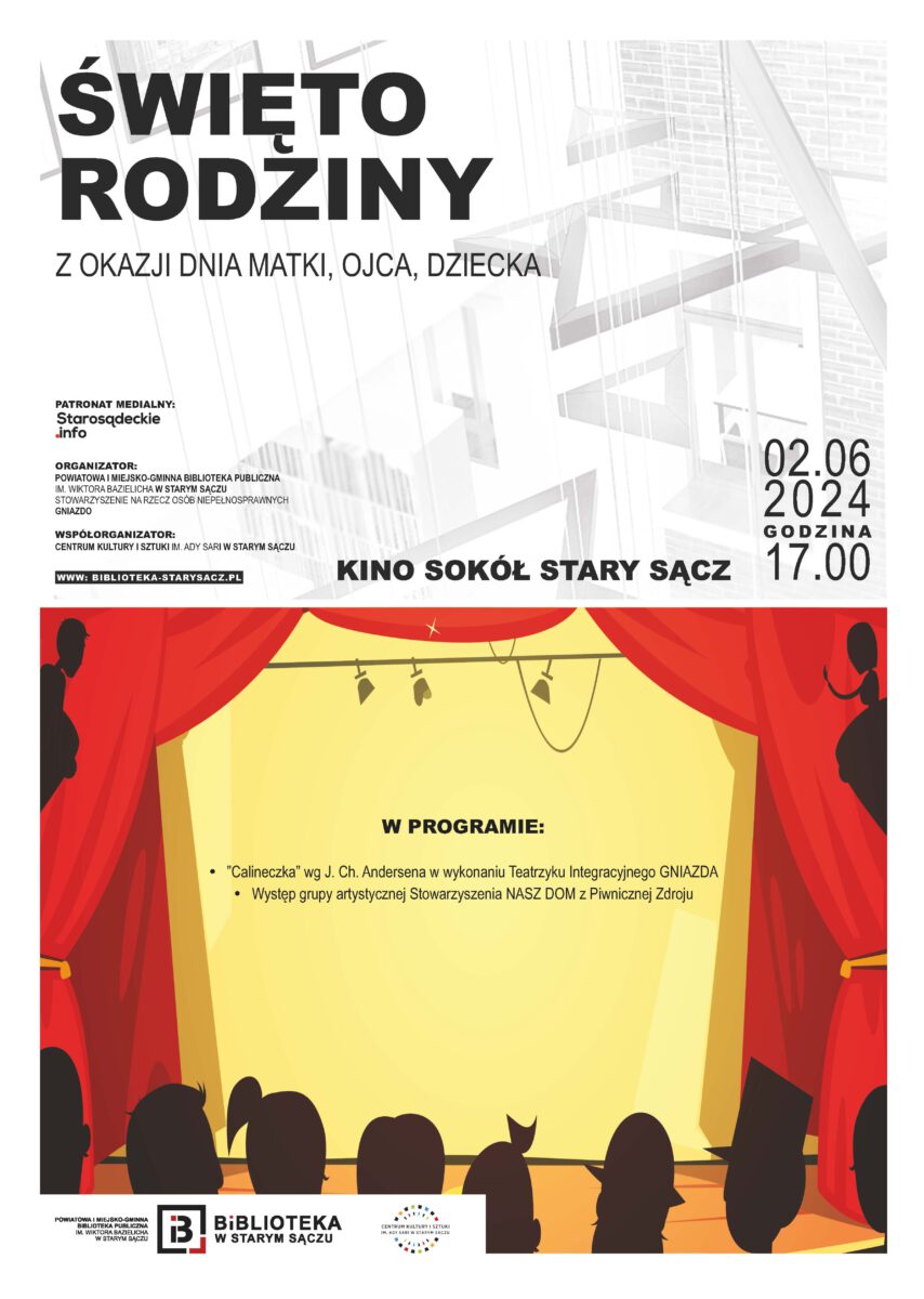 Aktorzy Teatrzyku Integracyjnego „Gniazdo” zaprosili widzów do magicznego świata pełnego barw, światła i muzyki. Razem z Calineczką poznaliśmy Ropuchę, Motyla, Myszkę, Kreta i Jaskółkę. Impresja teatralna na podstawie bajki Andersena wciągnęła widzów do zabawy, gdzie zatarła się granica między światem realnym, a fantastycznym. 2 czerwca 2024 roku, tradycyjnie w Kinie Sokół odbył się Dzień Rodziny. Koncert […]