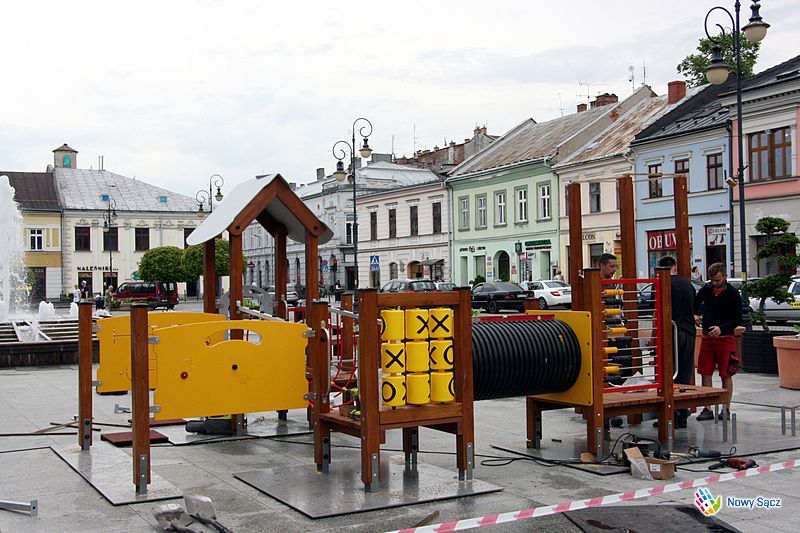 Jeszcze tylko trochę cierpliwości… Jak co roku na sądeckim rynku powstaje plac zabaw dla dzieci. Urządzenia służyć będą nie tylko do zabawy, mają także walor edukacyjny. Wszystko z myślą o małych sądeczanach, którzy przynajmniej część wakacji spędzą w mieście. Głośnej zabawy z pewnością nie zabraknie, a rodzicom chwilę wytchnienia zapewni szum fontanny. nowysacz.pl