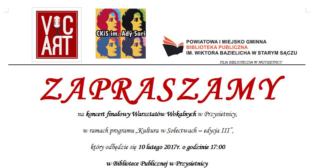 Przez cały okres ferii w Bibliotece w Przysietnicy odbywały się warsztaty wokalne w ramach III edycji programu „Kultura w sołectwach” finansowanego przez Centrum Kultury i Sztuki im. Ady Sari w Starym Sączu. Warsztaty zakończą się Koncertem Finałowym, na który zapraszamy już jutro!