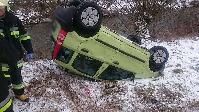 Kamionka Wielka. Fiat Panda na dachu w rowie