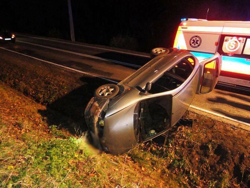 Nowa Wieś. Samochód wypadł z drogi. Policjant pospieszył rannej na pomoc