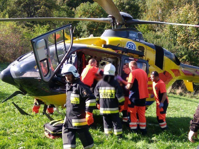 Brzyna. Helikopter w drodze po rannego mężczyznę