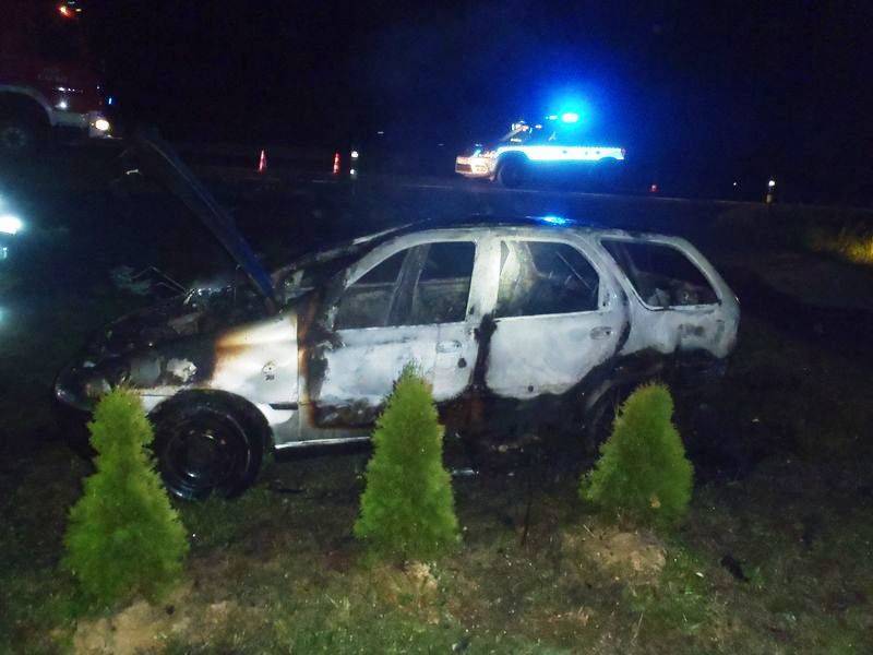 W Maszkowicach spłonął samochód, który zderzył się z radiowozem