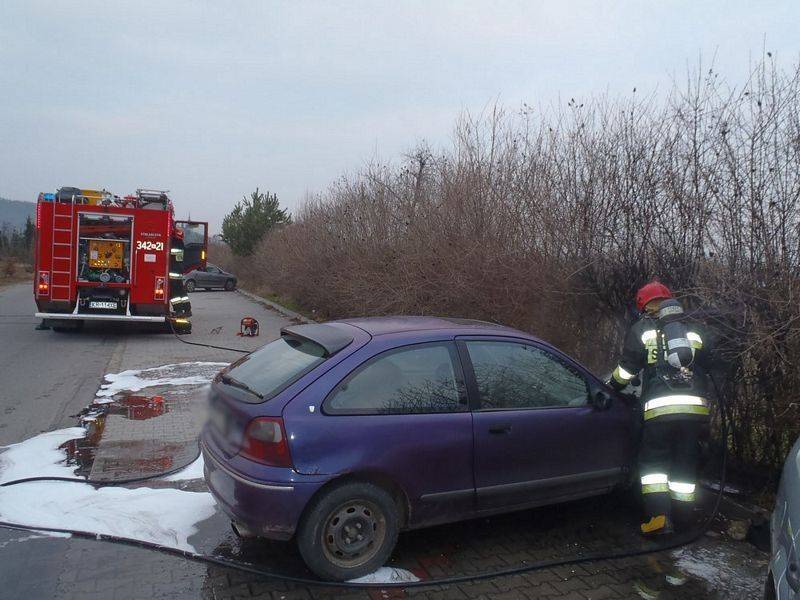 Stary Sącz. Pożar „osobówki” na parkingu ogródków działkowych