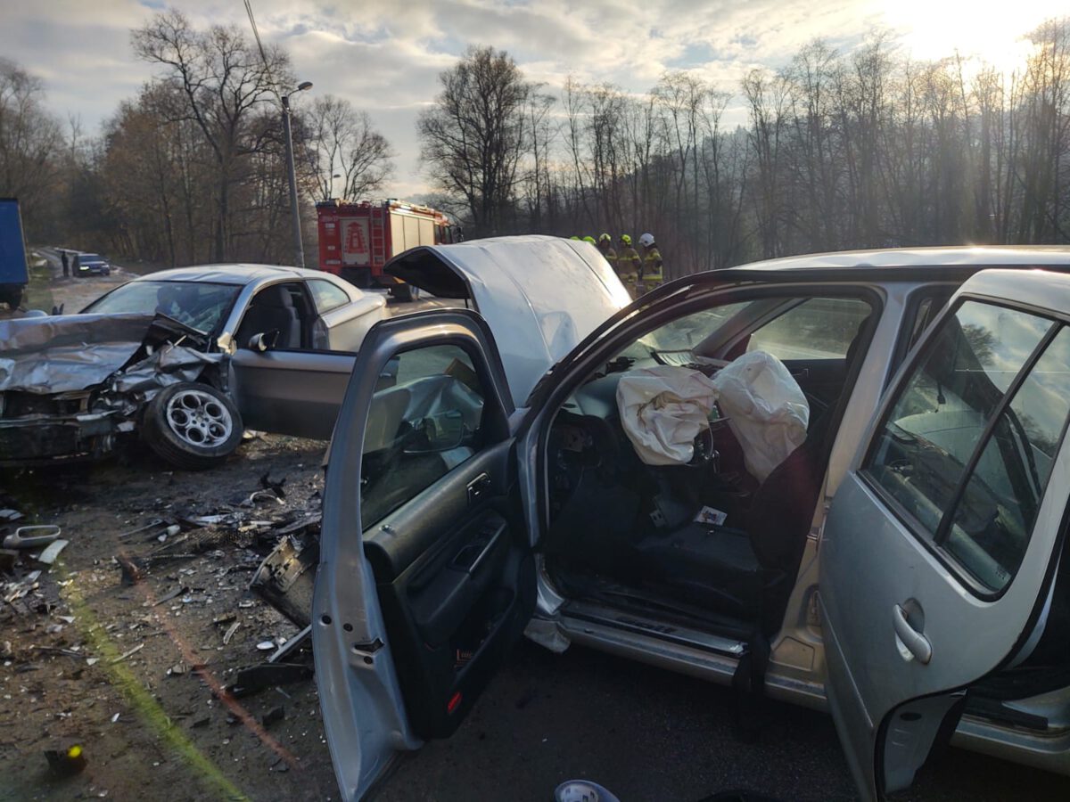 Nowy Sącz. Roztrzaskane trzy osobówki. Droga krajowa zablokowana