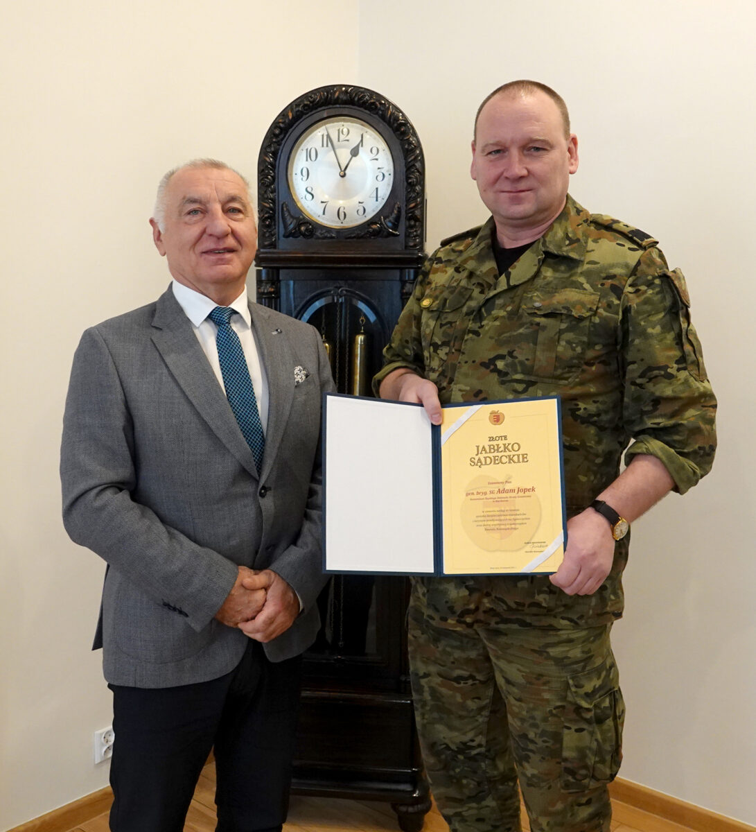 Starosta nowosądecki Marek Kwiatkowski wręczył Złote Jabłko Sądeckie generałowi Straży Granicznej Adamowi Jopkowi. Generał mieszka w Moszczenicy Niżnej (gmina Stary Sącz) i obecnie jest komendantem Śląskiego Oddziału Straży Granicznej. Nominację generalską odebrał z rąk prezydenta Andrzeja Dudy w listopadzie ubiegłego roku. – Dziękuję za wieloletnią pracę na rzecz rozwoju systemu bezpieczeństwa i ochrony mieszkańców oraz […]