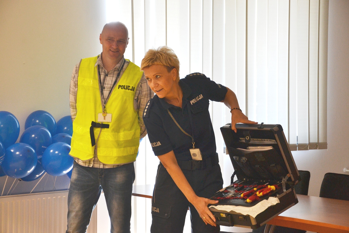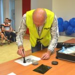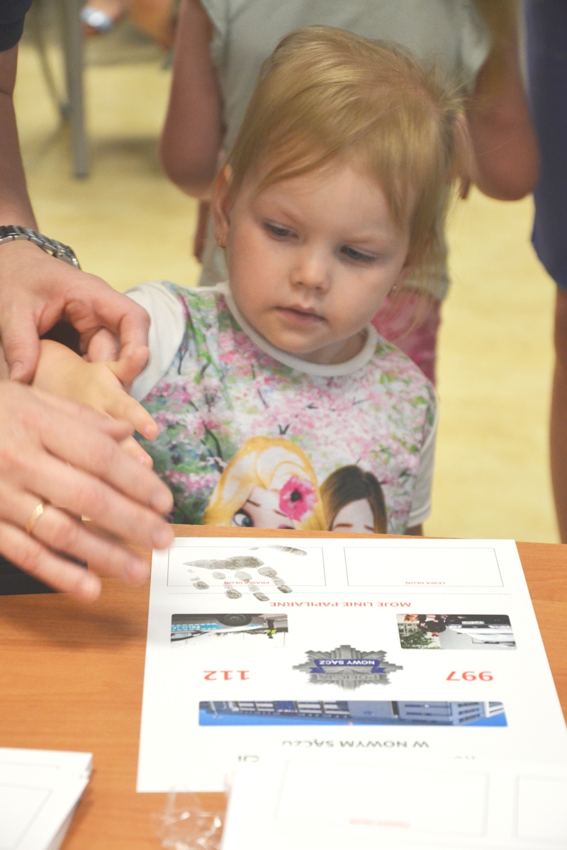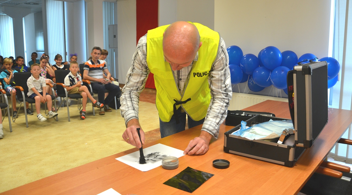 Goście rozpoczęli wizytę od spotkania z policjantkami Wydziału Prewencji, które przypomniały najmłodszym oraz ich opiekunom, m.in. jak bezpiecznie wypoczywać nad wodą. Następnie dzieci przeniosły się z technikiem kryminalistyki w świat policyjnej magii. Przecierały oczy ze zdziwienia na widok zawartości walizki, którą technik zawsze ma ze sobą na miejscu zdarzenia. Okazało się, że lakier do włosów, pędzle i szczypce też służą do zbierania i utrwalania śladów pozostawionych przez przestępców na miejscu zdarzenia. Dużą frajdę sprawiło małym gościom odbicie swoich odcisków palców na pamiątkowym dyplomie.
