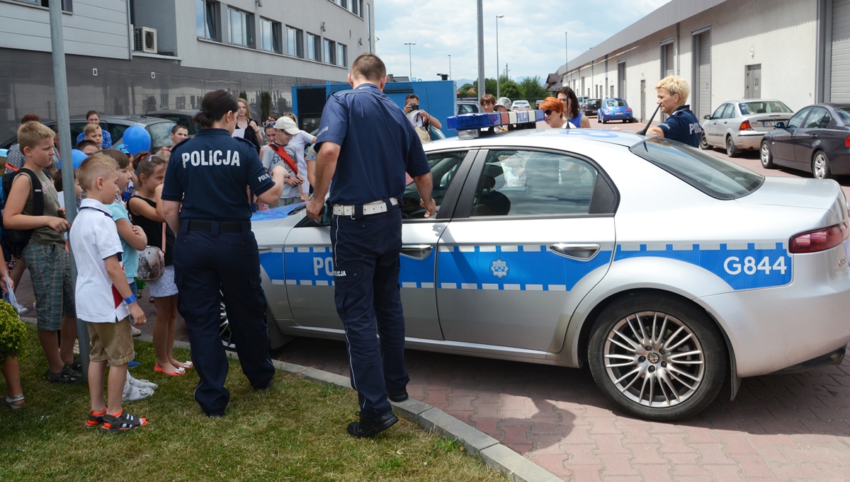 Podczas spotkania z funkcjonariuszem ruchu drogowego, dzieci zobaczyły elementy ubioru i sprzęt, jakim posługuje się podczas przeprowadzania kontroli drogowych. Każdy uczestnik otrzymał drobny upominek, a wizytę w komendzie zakończyły pamiątkowe zdjęcia przy policyjnym radiowozie.