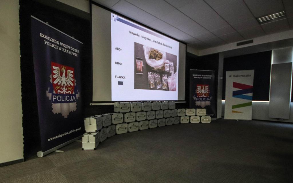 19 lutego br. w siedzibie Komendy Wojewódzkiej Policji w Krakowie odbyło się uroczyste przekazanie małopolskim policjantom 33 edukacyjnych walizek narkotykowych. Walizki wyposażone są w imitację środków psychoaktywnych i przyrządów służących do ich ukrycia oraz zażywania. Będą one wykorzystywane podczas spotkań z rodzicami i nauczycielami. Zakup tych walizek był możliwy dzięki finansowemu wsparciu Urzędu Marszałkowskiego Województwa Małopolskiego.