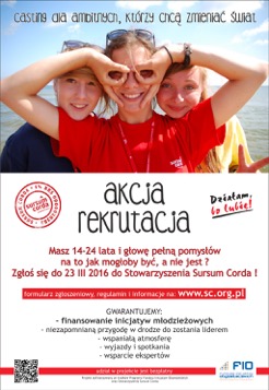 Ale to nie koniec. Rozdamy więcej niż tylko pieniądze. Chcemy wyłowić i wyposażyć w konkretne umiejętności przyszłych liderów. Dlatego młodzież uczestnicząca w projekcie dodatkowo skorzysta ze szkoleń, konsultacji i wyjazdów – będzie moc pozytywnej energii  Do 23 marca załoga Sursum Corda czeka na zgłoszenia młodych-aktywnych poprzez stronę www.sc.org.pl/projekty/dzialam_bo_lubie