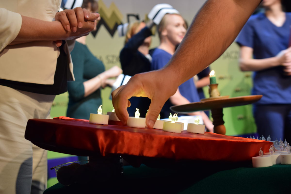 Absolwenci zapalali świeczkę, której światło jest znakiem gotowości niesienia pomocy każdemu człowiekowi, który trafi pod ich opiekę, bez względu na różnice kulturowe, rasowe czy wyznaniowe.