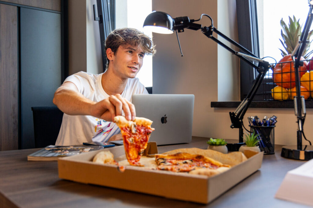 Każdy pokój jest wyposażony w wysokiej jakości meble, łóżka, szafy oraz biurka, a szybki Internet bezprzewodowy zapewnia łatwy dostęp do nauki online i rozrywki.