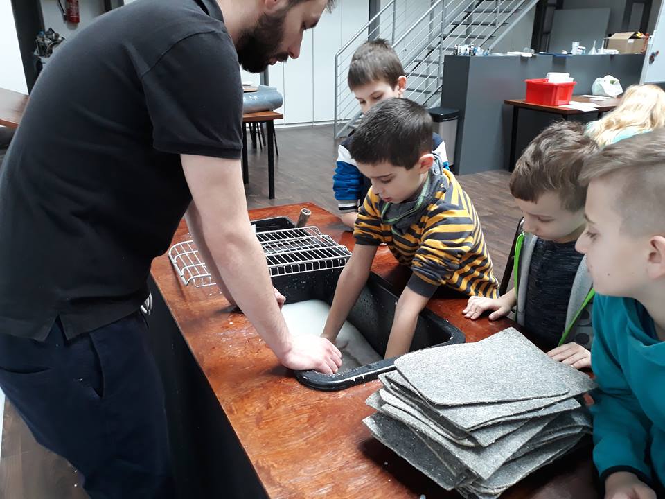 -Dzieci oprócz nauki miały świetną zabawę –kontynuuje Anna Majda -Ogromną frajdę sprawiły im lekcje warsztatowe. Mogły same wykonać kartkę papieru, przy tym poznać jego historie, eksperymentować z produktami w kuchni (było kolorowo, wybuchająco i czarodziejsko). Prawdziwym hitem okazał się zbudowany przez dzieci poduszkowiec na którym mali konstruktorzy (i nie tylko) mieli okazję pojeździć.