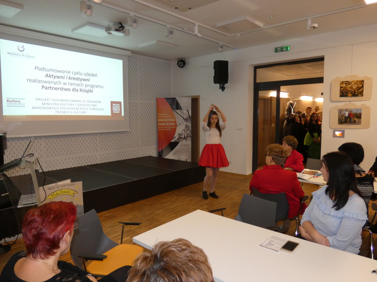 W ramach realizacji tego projektu odbyły się już 3 szkolenia oraz wyjazd studyjny: „Jadłospis małych moli książkowych, czyli co robić, aby dzieci czytały litery, smakowały wyrazy, połykały zdania i pożerały książki …? – warsztaty miały na celu przygotowanie bibliotekarzy do niestandardowych metod pracy zachęcających dzieci i młodzież do czytania; „Teatr cieni” – uczestnicy warsztatów nauczyli się zasad tworzenia cieni postaci ludzkich, zwierząt, form plastycznych i kolorowych figur. Zdobyte umiejętności z pewnością okażą się pomocne zarówno podczas przygotowywania kreatywnej i twórczej pracy z książką, jak również pozwolą wprowadzać do zajęć elementy teatru; „Prawo w bibliotece” – celem szkolenia było podniesienie kwalifikacji w zakresie zmieniających się przepisów prawnych obowiązujących w bibliotekach; Wyjazd studyjny do Miejskiej Biblioteki Publicznej w Chrzanowie, podczas którego bibliotekarze pogłębili wiedzę i wymienili doświadczenia z bibliotekarzami – według rankingu Rzeczypospolitej jednej z najlepszych Bibliotek w Polsce.