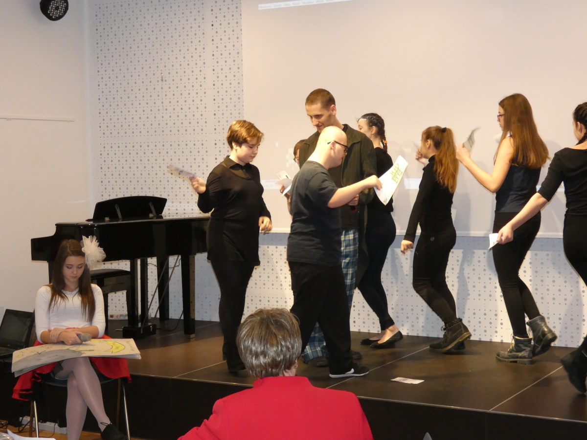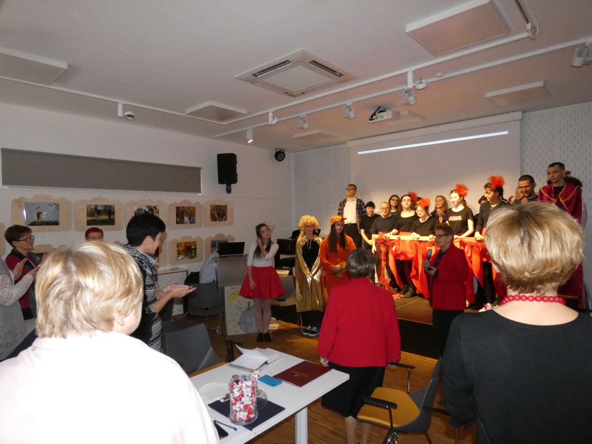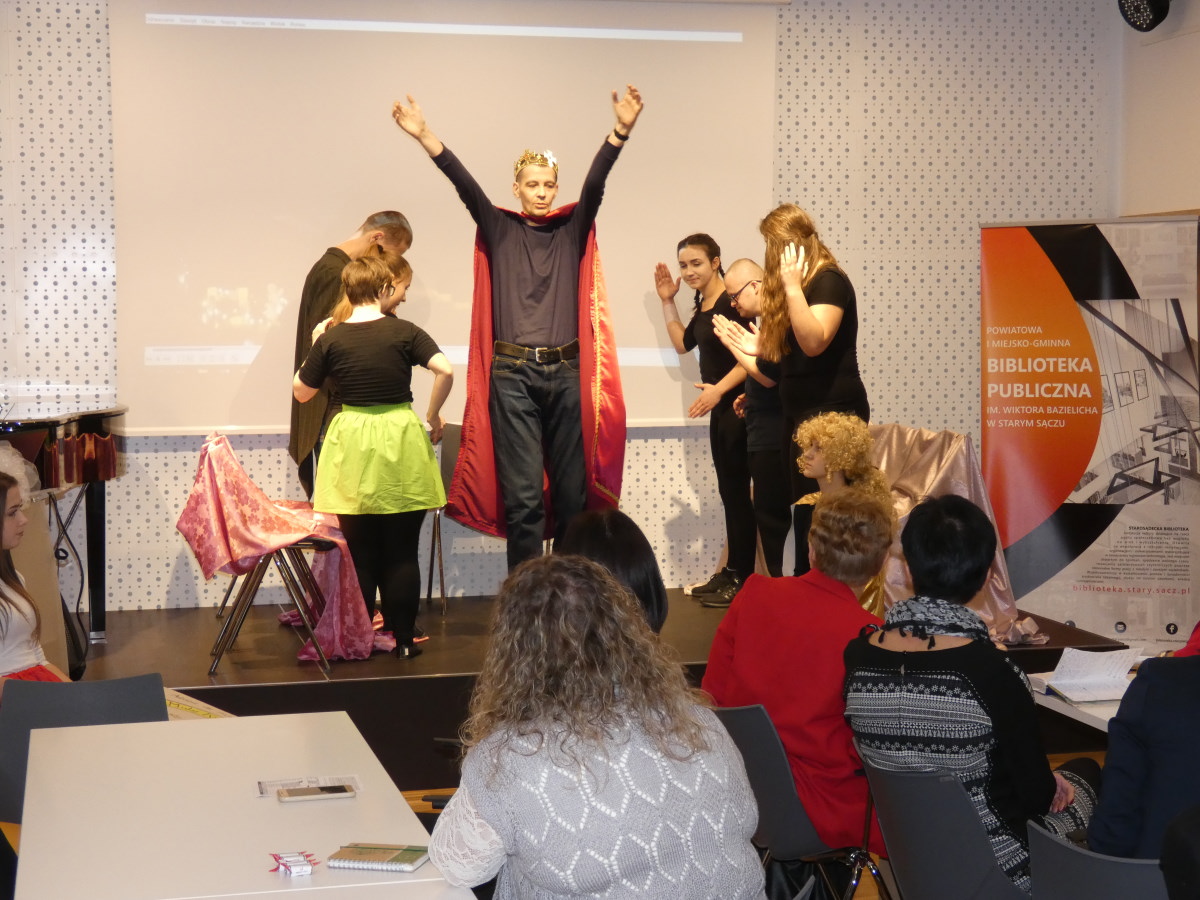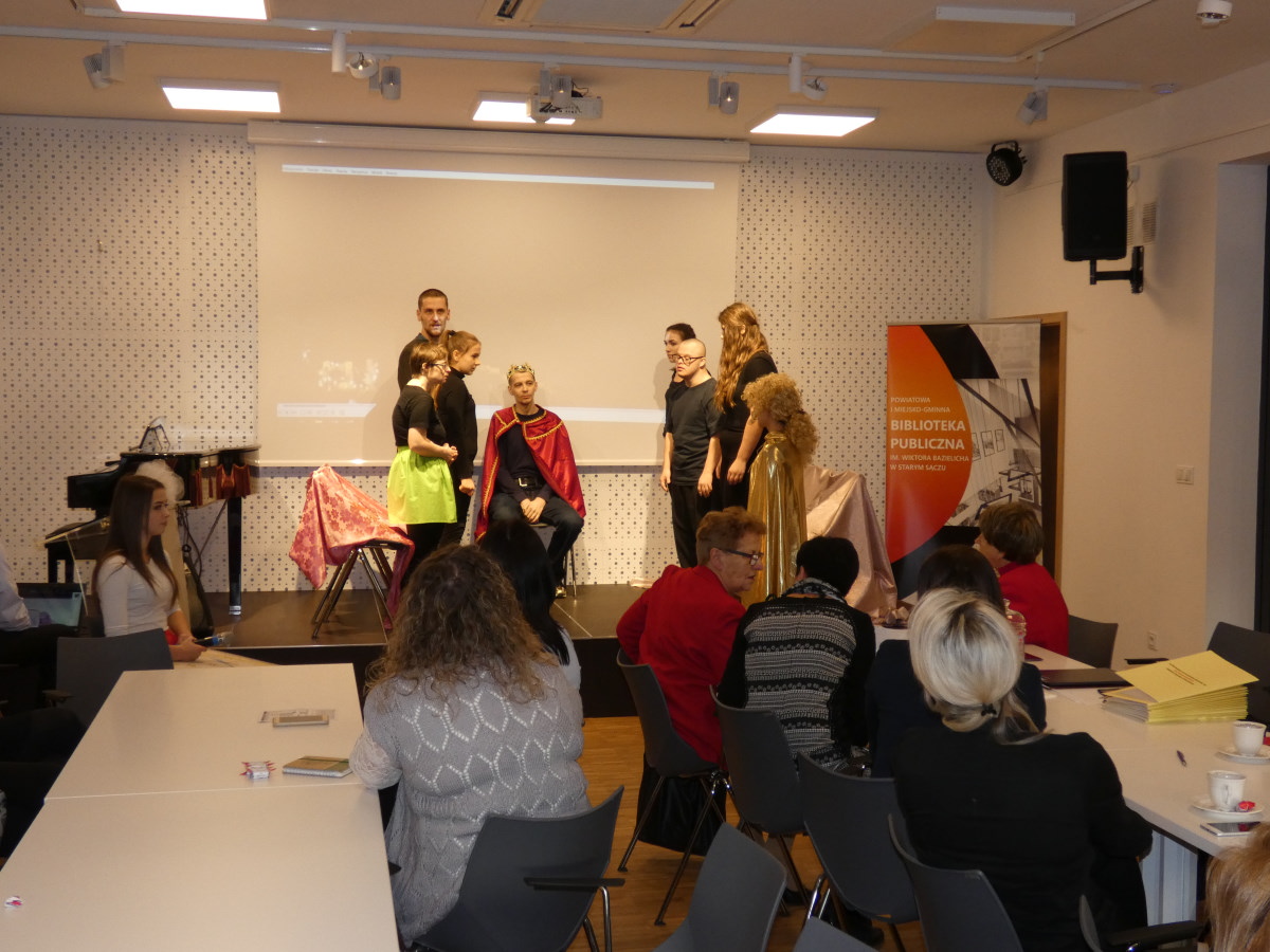 W myśl powiedzenia podróże kształcą, udało się połączyć pogłębienie wiedzy na temat bibliotek z historią, zwiedzając Chrzanowskie Muzeum. Na spotkaniu Podsumowującym projekt wystąpili podopieczni Stowarzyszenia na Rzecz Osób Niepełnosprawnych GNIAZDO z widowiskiem teatralno-muzycznym „Mały książę”. Publiczność nagrodziła wykonawców owacją na stojąco za wzruszający występ. Uczestnicy otrzymali dyplomy potwierdzające ukończenie szkoleń. A o współpracy z biblioteką i korzyściach płynących ze współdziałania osób niepełnosprawnych ze zdrową młodzieżą w teatrze integracyjnym mówiła Zofia Wcisło – Prezes Stowarzyszenie na Rzecz Osób Niepełnosprawnych GNIAZDO w Starym Sączu.