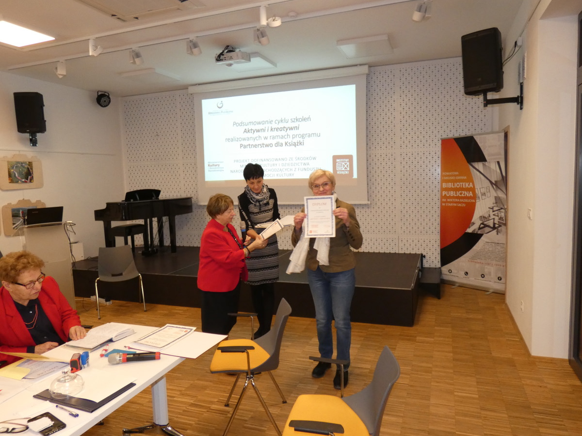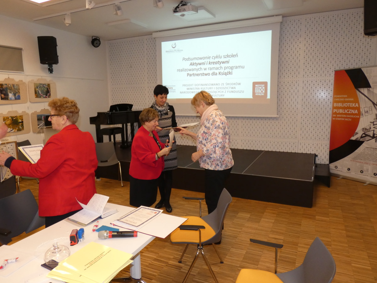 Powiatowa i Miejsko-Gminna Biblioteka Publiczna w Starym Sączu zakończyła realizację projektu – realizując cykl szkoleń – „Aktywni i kreatywni” dofinansowanego ze środków Ministra Kultury i Dziedzictwa Narodowego pochodzących z Funduszu Promocji Kultury w ramach programu Partnerstwo dla Książki.