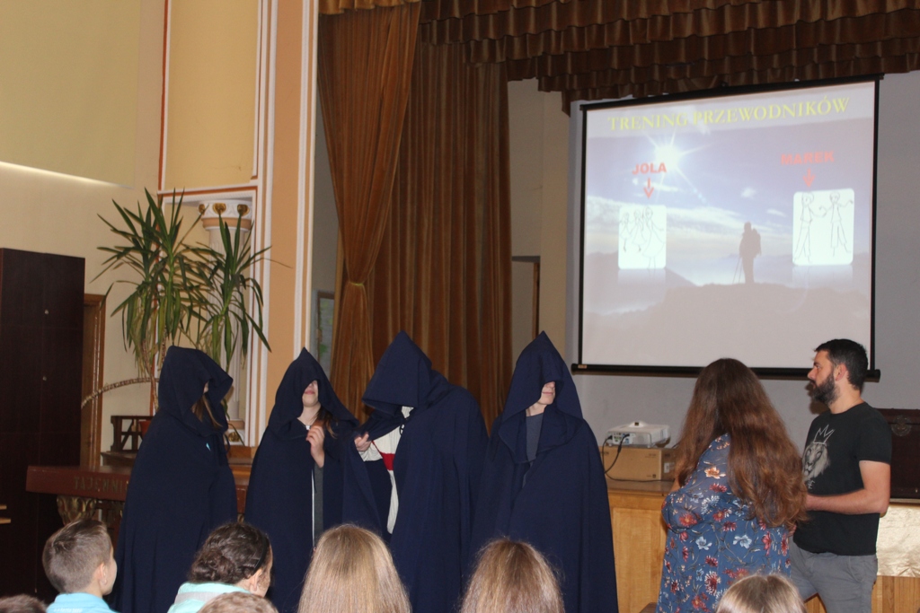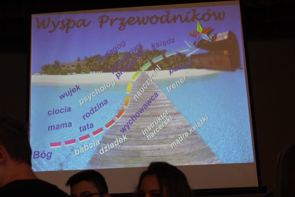 Bardzo ważną wyspą, na którą „ popłynęli” uczniowie wraz z trenerami była „Wyspa Przewodników.” To tam dowiedzieliśmy się, że choć w życiu każdego człowieka bywają trudne chwile, to są wokół nas ludzie, którzy może nie są bez wad, ale są to osoby którym na nas zależy, można im zaufać i poprosić ich o pomoc. To są nasi  przewodnicy, w którymś konkretnym  momencie naszego życia.  Dzięki nim możemy: „ odważnie iść szlakiem życia i korzystać ze śladów ludzi, którym można zaufać”.