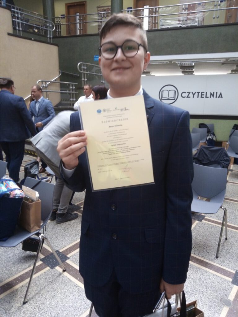 W uroczystej gali Arturowi towarzyszyła jego mama Pani Justyna Dorula oraz jego opiekun naukowy Pani mgr Elżbieta Kosiba.