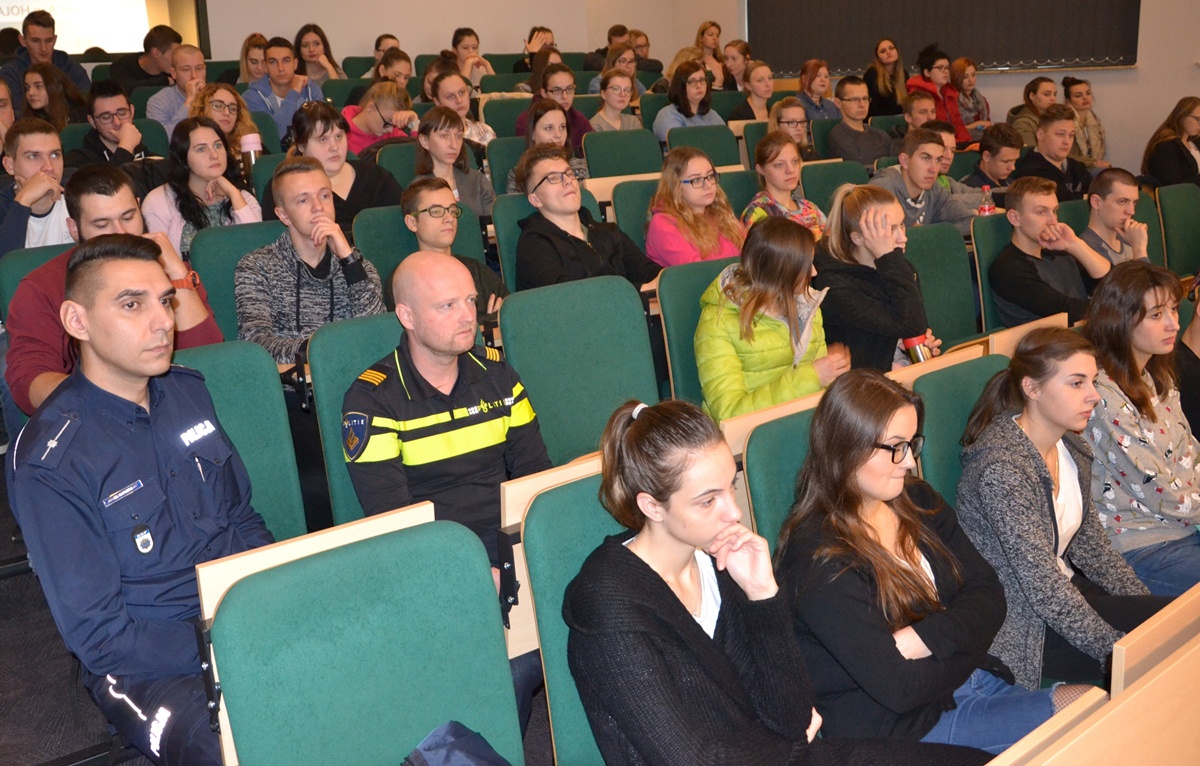 – Handel ludźmi to trzecie najbardziej intratne przestępstwo na świecie – po handlu bronią i narkotykami najlepiej sprzedaje się człowiek – uświadomiła studentów przedstawicielka Policji holenderskiej Irena de Ruig – specjalistka do spraw migracji zarobkowych. Podczas konwersatorium naukowego, które odbyło się na terenie uczelni, wraz z Robinem de Tombe z Wydziału do walki z handlem ludźmi, podpowiadała młodzieży jak prawidłowo przygotować się do wyjazdu oraz udzielała rad na co zwrócić uwagę przy wybieraniu oferty pracy w Holandii oraz omawianiu kwestii zarobków i warunków zakwaterowania.