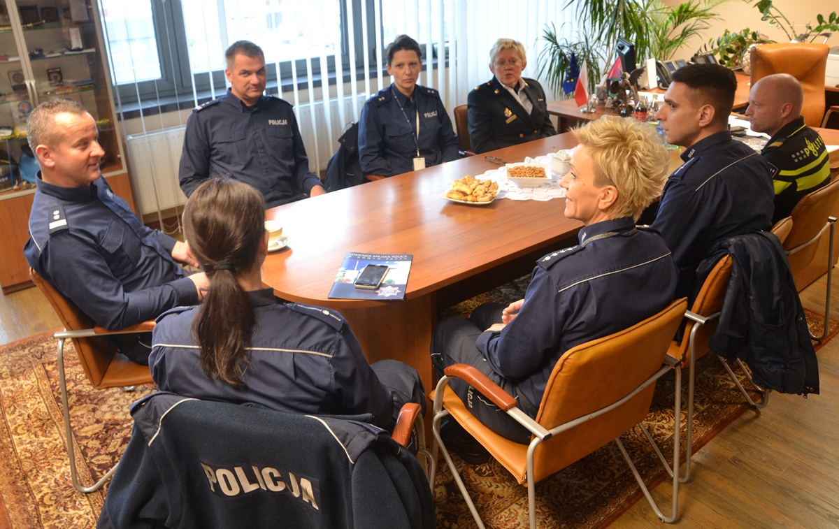 Goście z Holandii i Komendy Głównej Policji spotkali się również z mł. insp. Jarosławem Tokarczykiem – Komendantem Miejskim Policji w Nowym Sączu. Wizyta była okazją do rozmów i wymiany doświadczeń związanych z policyjną służbą w Holandii i w Polsce. Delegaci poznali obszar działania i strukturę organizacyjną komendy, a także zobaczyli jej pomieszczenia, m.in. strzelnicę oraz serce komendy – czyli stanowisko kierowania.