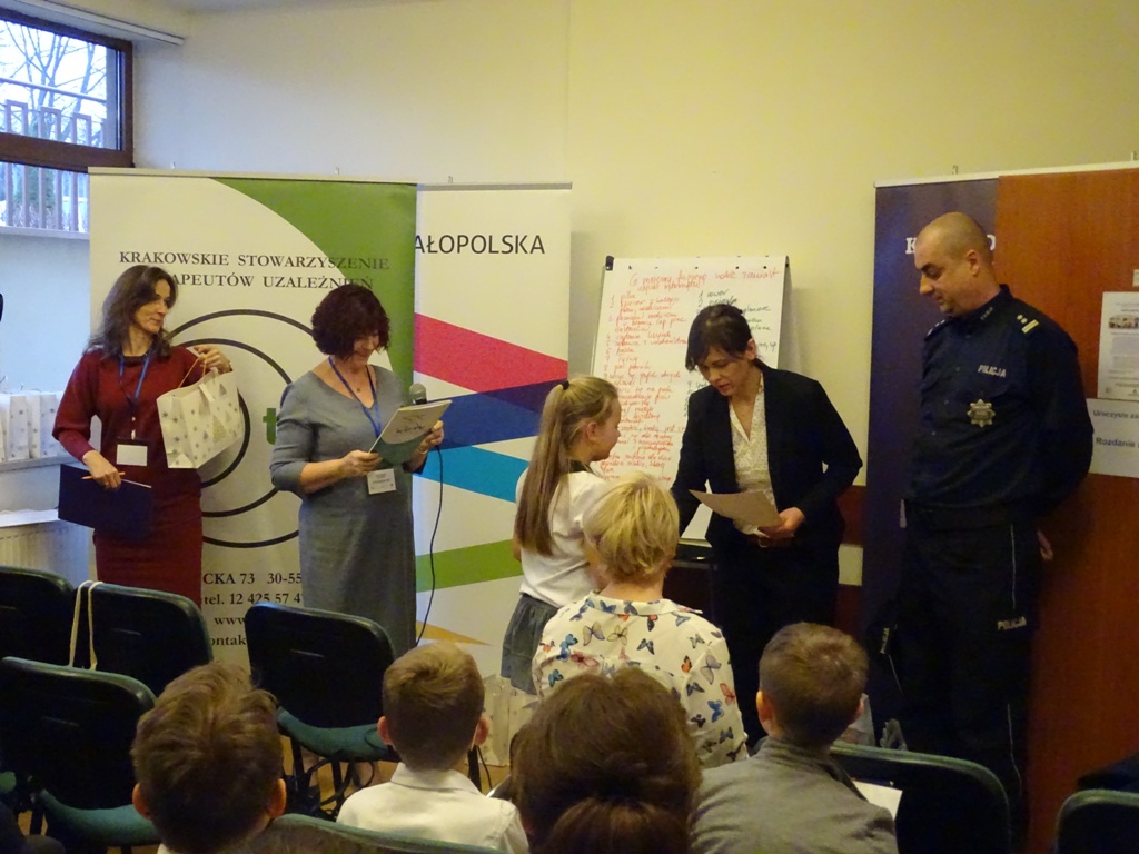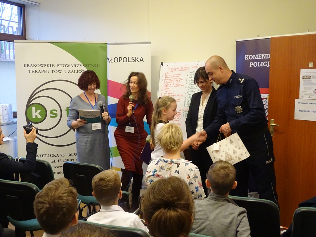 Spośród 571 prac napisanych przez uczniów klas czwartych województwa małopolskiego, nagrodzono autorów 5 prac, wśród których znalazła się Julia Zegarlińska, uczennica klasy IVa ze Szkoły Podstawowej nr 2 im. Juliusza Słowackiego w Starym Sączu, której organizatorzy przyznali wyróżnienie. Nagrodzona praca Julii Zegarlińskiej została opublikowana na stronie Krakowskiego Stowarzyszenia Terapeutów Uzależnień.  19 grudnia 2017 roku w Krakowie odbyła się uroczystość wręczenia nagród w konkursie profilaktycznym dla uczniów klas IV-VI szkół podstawowych z województwa małopolskiego „Bezpieczna sieć”, w trakcie której nagrodzeni uczniowie wzięli udział w quizach dotyczących bezpieczeństwa w sieci, otrzymując dodatkowe nagrody za udzielanie poprawnych odpowiedzi.