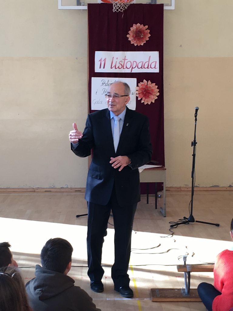 Pan Kazimierz Korczyński, historyk z wykształcenia, absolwent Uniwersytetu Jagiellońskiego, przypomniał młodym starosądeczanom drogę Polaków do odzyskania niepodległości.