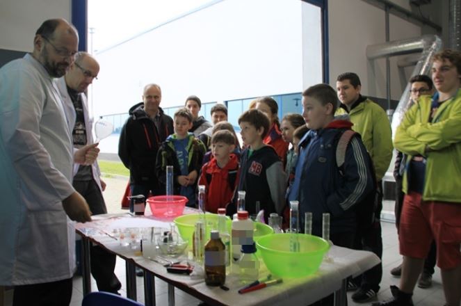 Pracownicy laboratorium Spółki Sądeckie Wodociągi przygotowali doświadczenia związane z wodą. Zamieniali wodę w sok malinowy oraz mleko, wyjaśniali jak powstaje mgła, taka jak na filmach, jak zapalić, ale nie spalić banknotu i dlaczego atrament rozpuszczony w gorącej wodzie jej nie zabarwia.