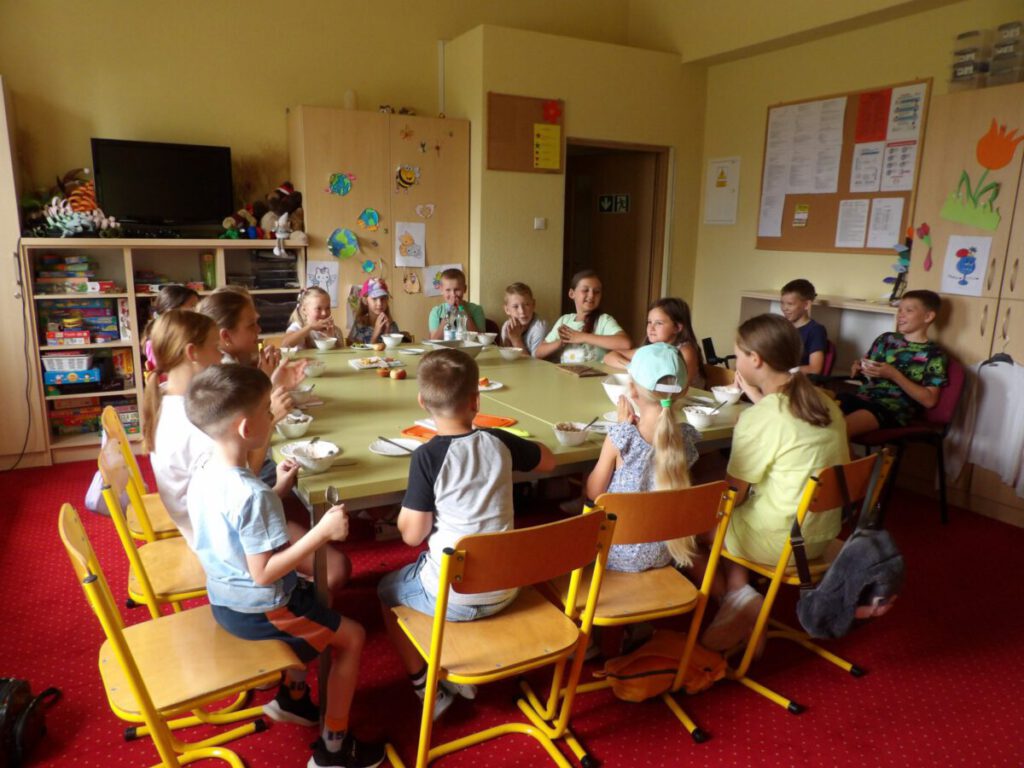 Wycieczki terenowe umilały pogodne dni, a własnoręcznie zrobiona sałatka owocowa z lodami i bitą śmietaną smakowała wybornie.