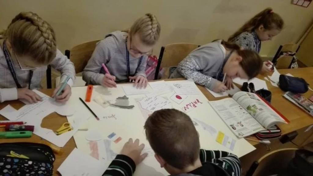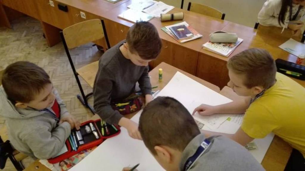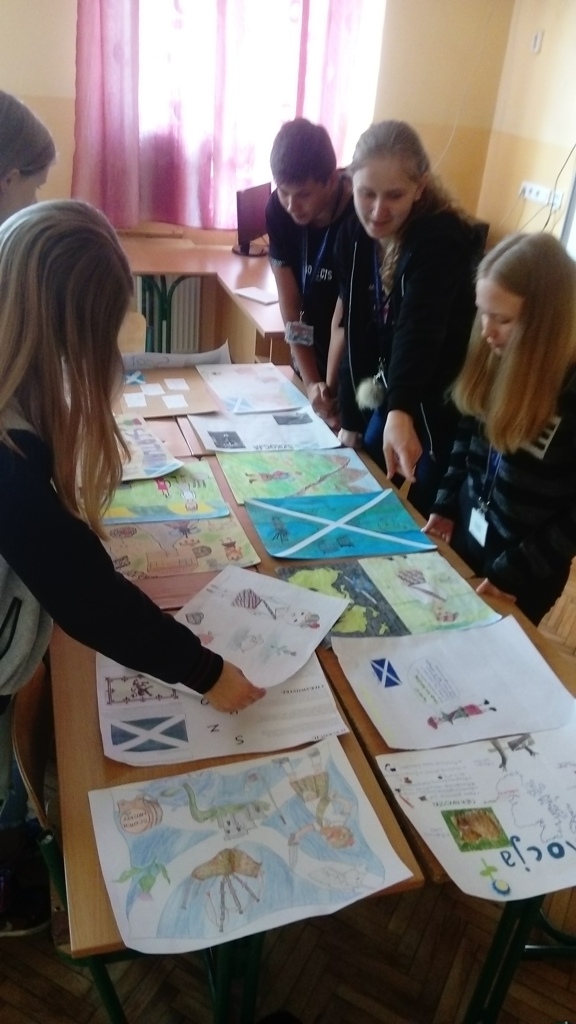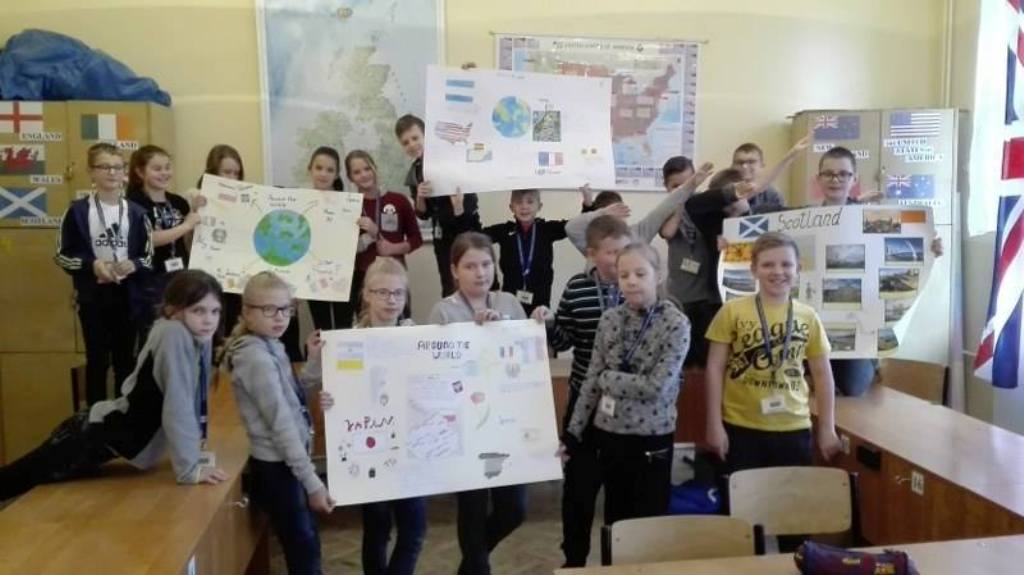 Najpierw podczas prac warsztatowych powstawały wspaniałe prace w języku angielskim na temat wybranych krajów w Europie. Nie brakowało na nich informacji o stolicach, językach używanych w danych krajach, flagach i symbolach narodowych. Efekty pracy, które cała społeczność szkolna mogła oglądać na wystawie podsumowującej tegoroczny projekt, zaskoczyły nie tylko nauczycieli, ale również samych uczniów z IVa i IVb, którzy z dumą spoglądali na swoje prace.