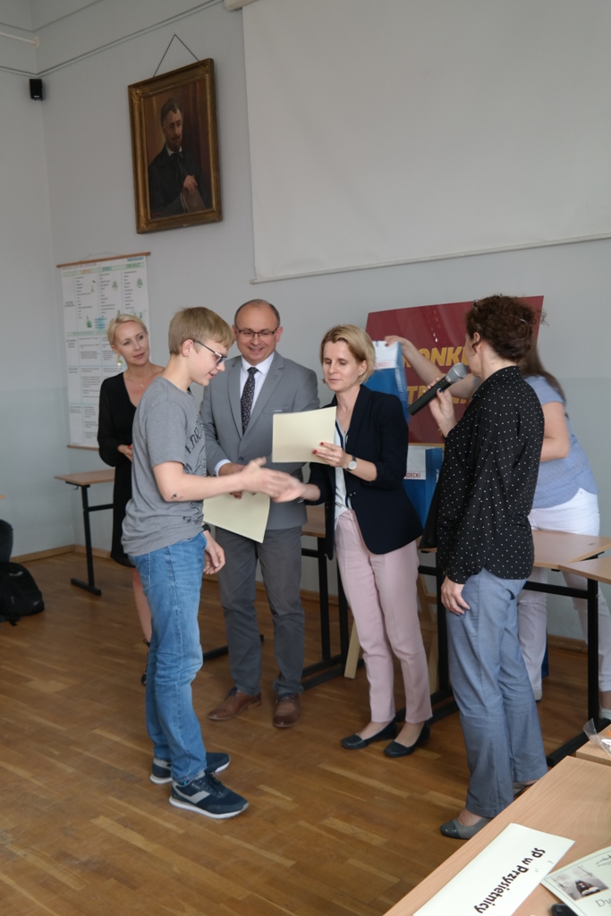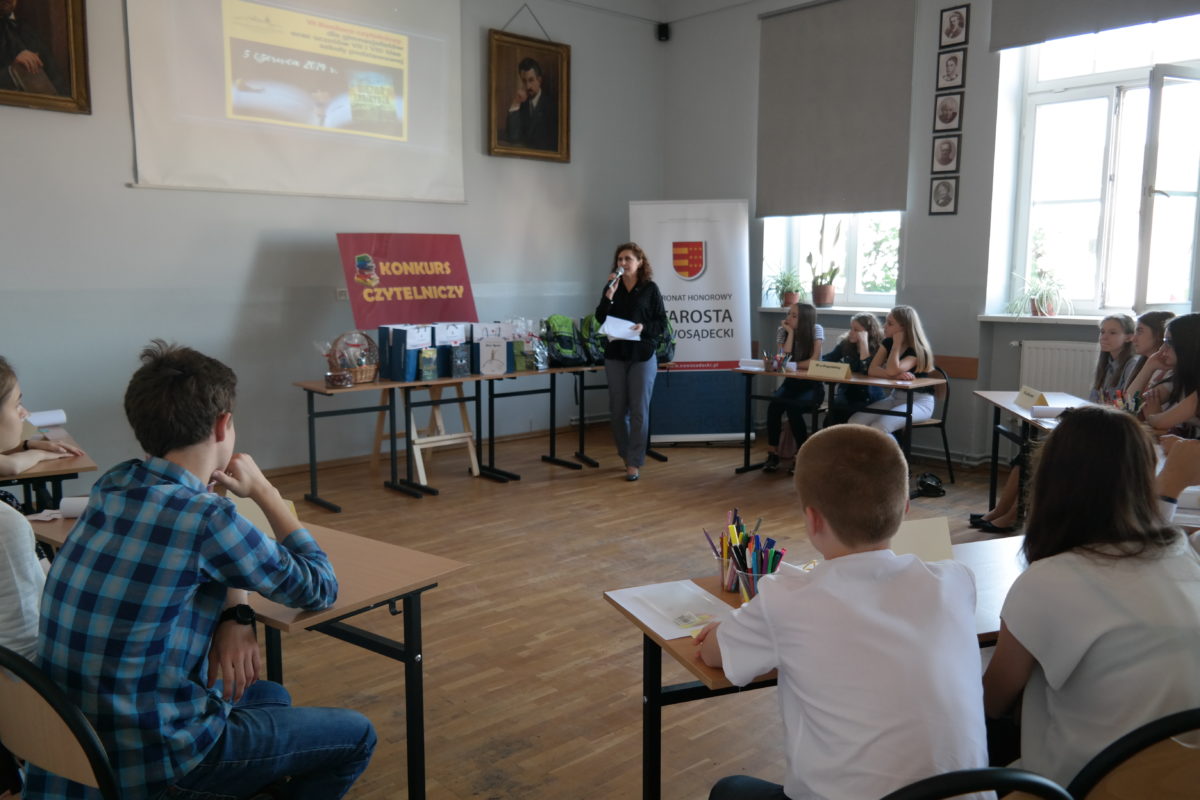 Czytanie pobudza wyobraźnię, dostarcza informacji, poprawia koncentrację… – zalet czytania jest wiele. Poloniści (i nie tylko) często narzekają, że młodzi ludzie nie czytają książek, wolą wirtualny świat niż czas spędzony na lekturze. O tym, że to tylko częściowa prawda, przekonaliśmy się 5 czerwca podczas VI edycji Konkursu czytelniczego dla uczniów szkoły podstawowej oraz gimnazjalistów pod honorowym patronatem Starosty Powiatowego Marka Kwiatkowskiego. W poprzednich latach organizatorki zapraszały uczniów w świat fantastyki twórców z literatury powszechnej – był …Tolkien, S. Collins, J. Rowling, V. Roth. W 2018 r. młodzież zmierzyła się z pierwszą częścią sagi o wiedźminie jednego z najbardziej znanych polskich autorów współczesnych, Andrzeja Sapkowskiego.