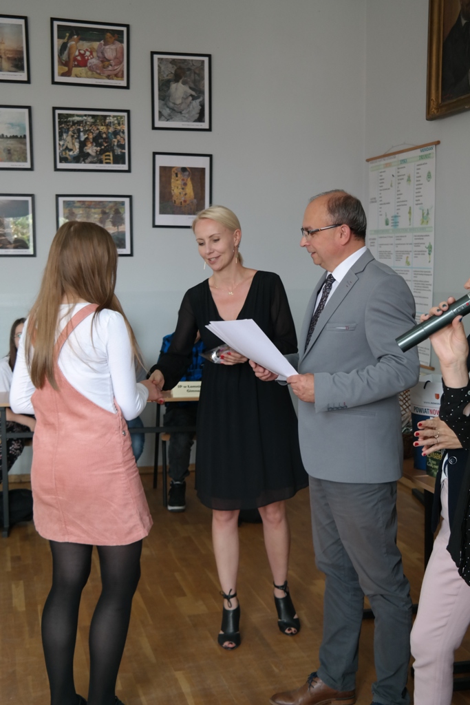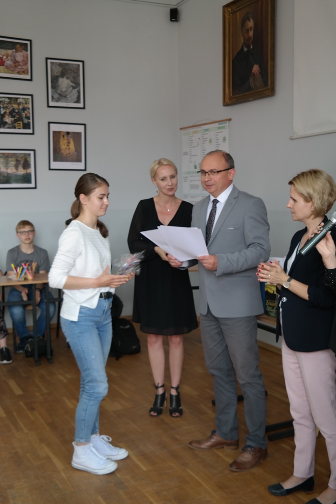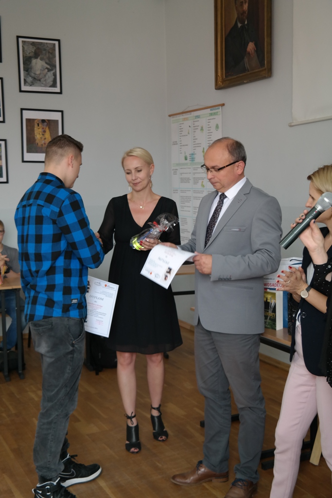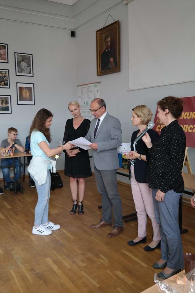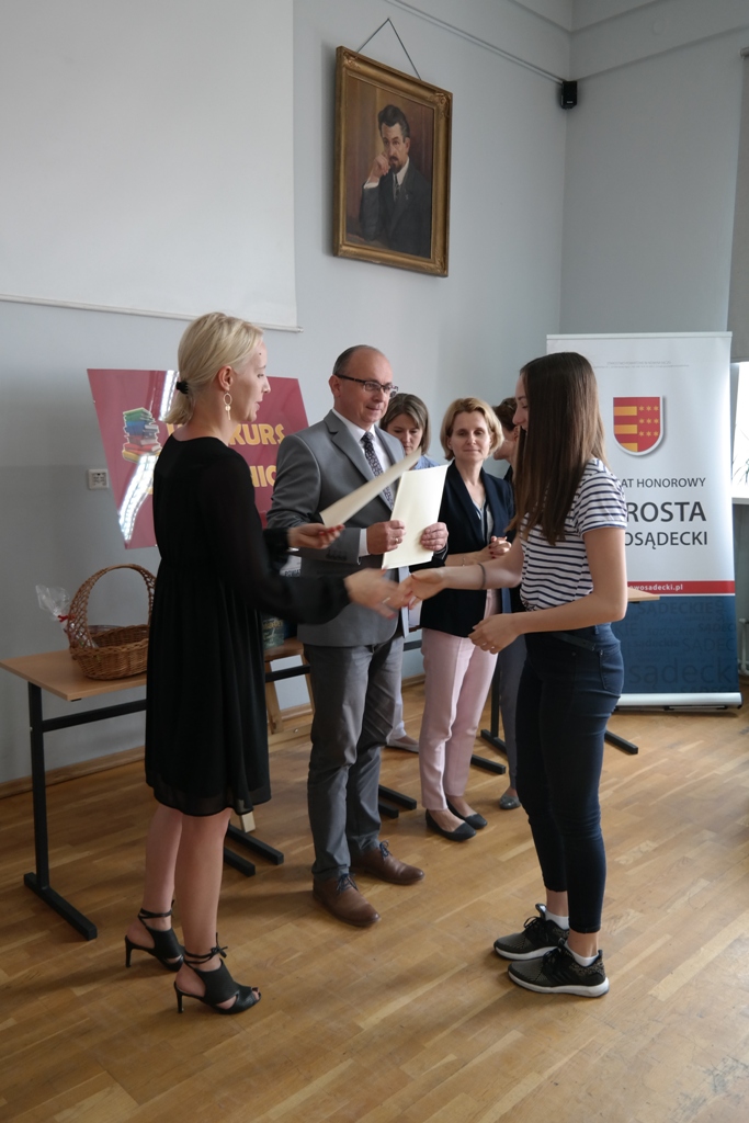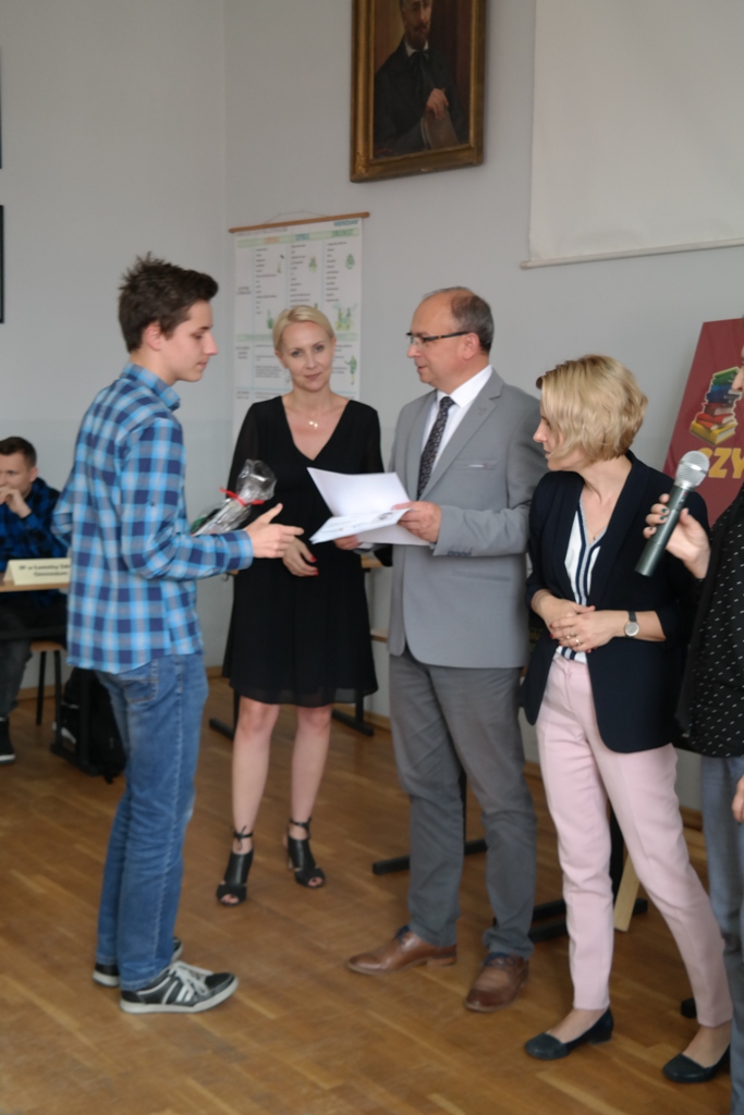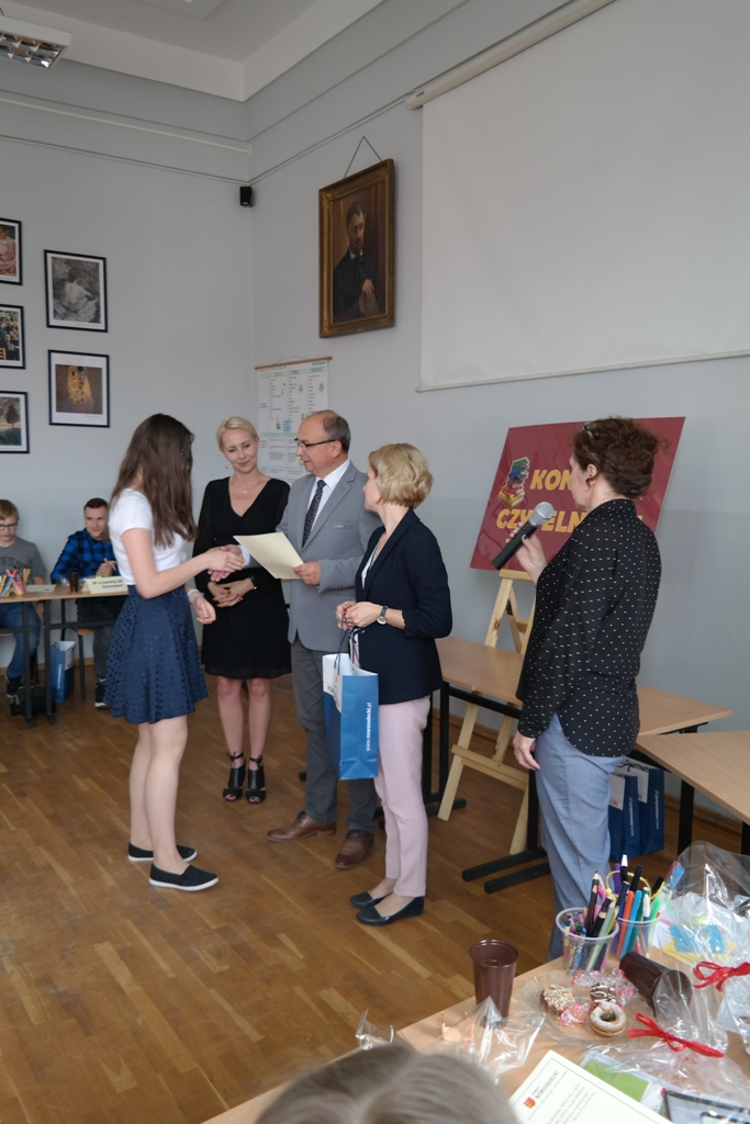 Dyrektor Grzegorz Skalski podsumowując konkurs, pogratulował sukcesów czytelniczych wszystkim uczestnikom i w asyście z wicedyrektorkami Angeliką Dudą i Urszulą Sadowską wręczył dyplomy, nagrody dla zwycięzców oraz upominki i słodycze dla wszystkich ufundowane przez Starostwo Powiatowe w Nowym Sączu, Firmę „Fakro”, Placówkę „Alior Banku” w Starym Sączu i Radę Rodziców ZSP.