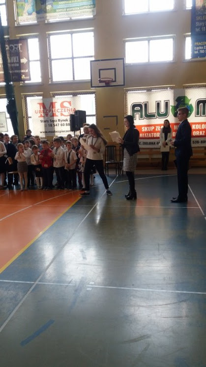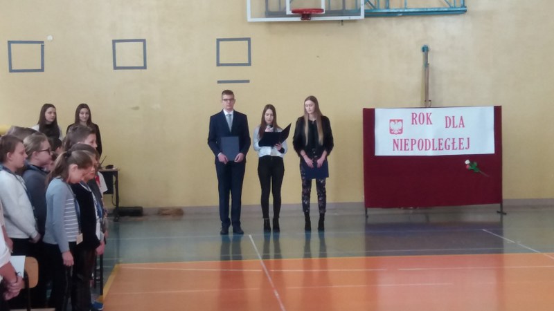 Zebrana społeczność szkolna miała okazję odśpiewać cztery zwrotki Hymnu, a Pani dyrektor Wioletta Nowak wręczyła nagrody w konkursie plastycznym na plakat pt. „Rok dla Niepodległej”. W trakcie uroczystości został też wyrecytowany oryginalny tekst Hymnu stworzony przez Józefa Wybickiego oraz przedstawiona krótka historia Pieśni Legionów Polskich we Włoszech.