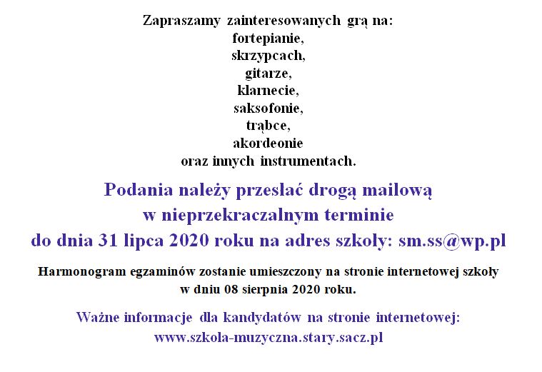 Dodatkowy nabór do Szkoły Muzycznej I stopnia w Starym Sączu