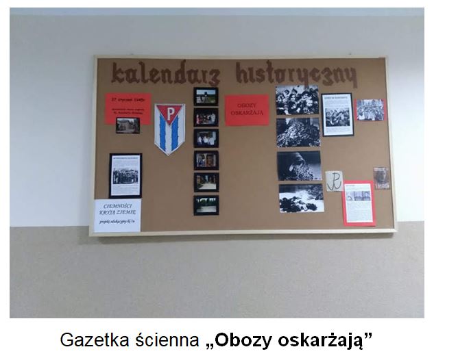 *Przygotowywali gazetki ścienne: np. „Obozy oskarżają”, „Rocznica wyzwolenia KL Auschwitz – Birkenau 27.01.1945r.”