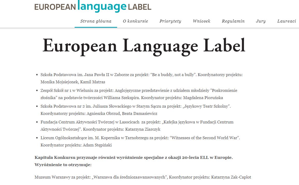 „Dwójka” Laureatem Konkursu EUROPEAN LANGUAGE LABEL 2019