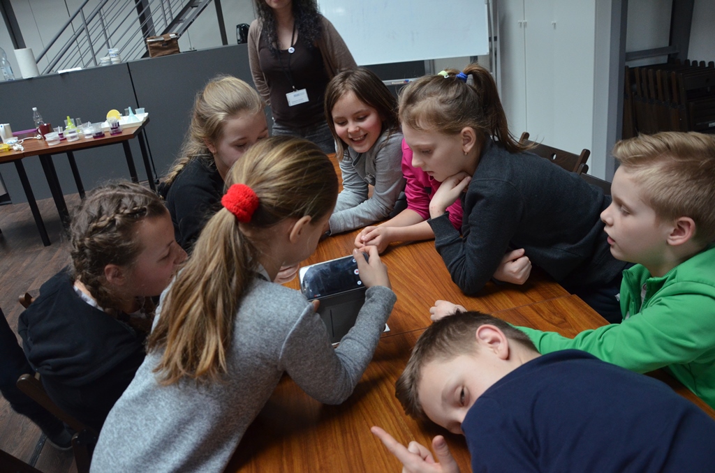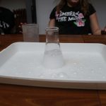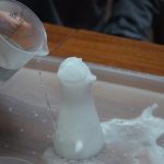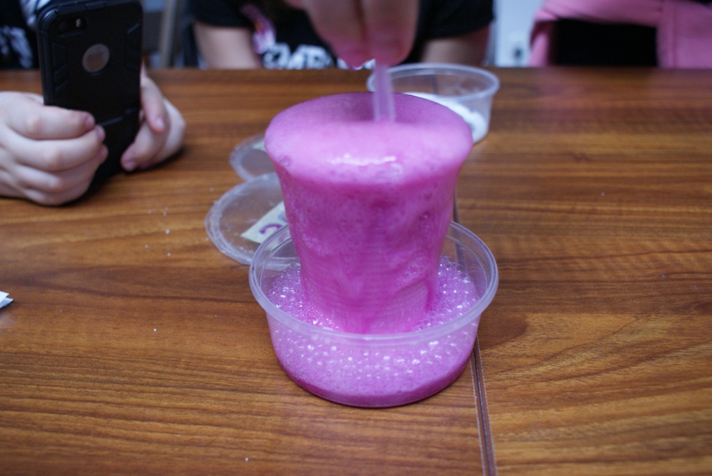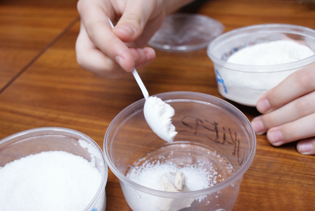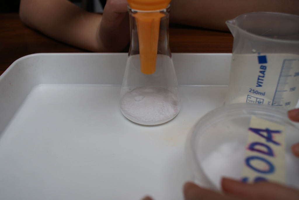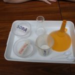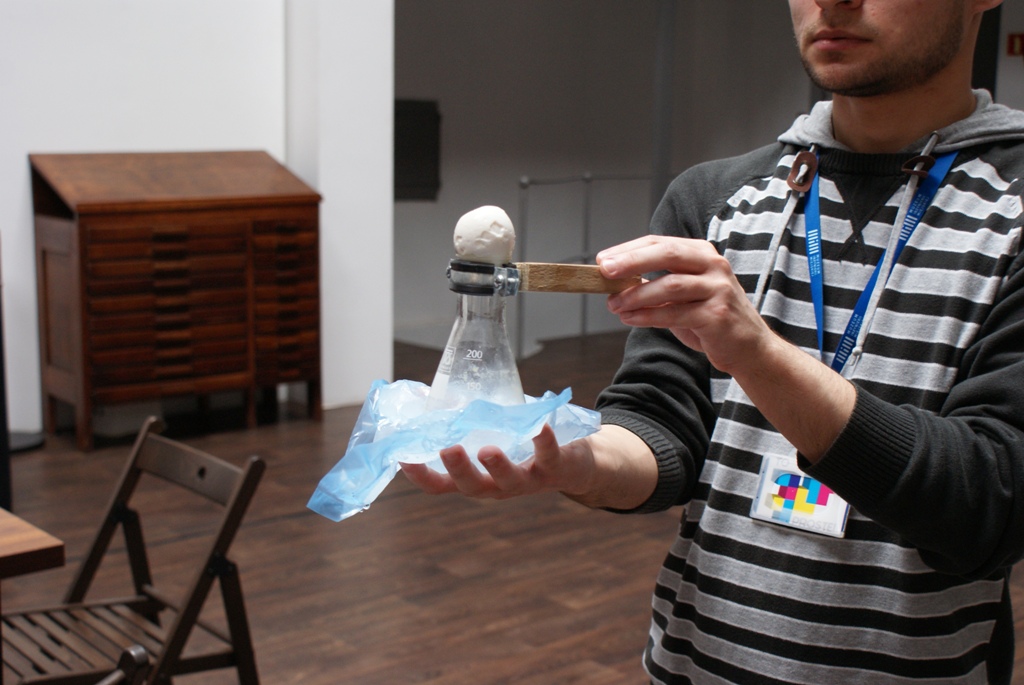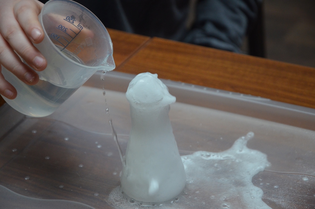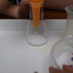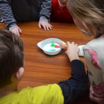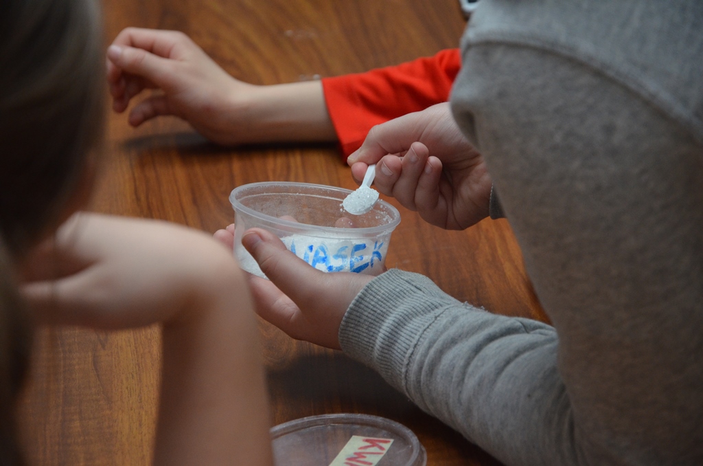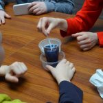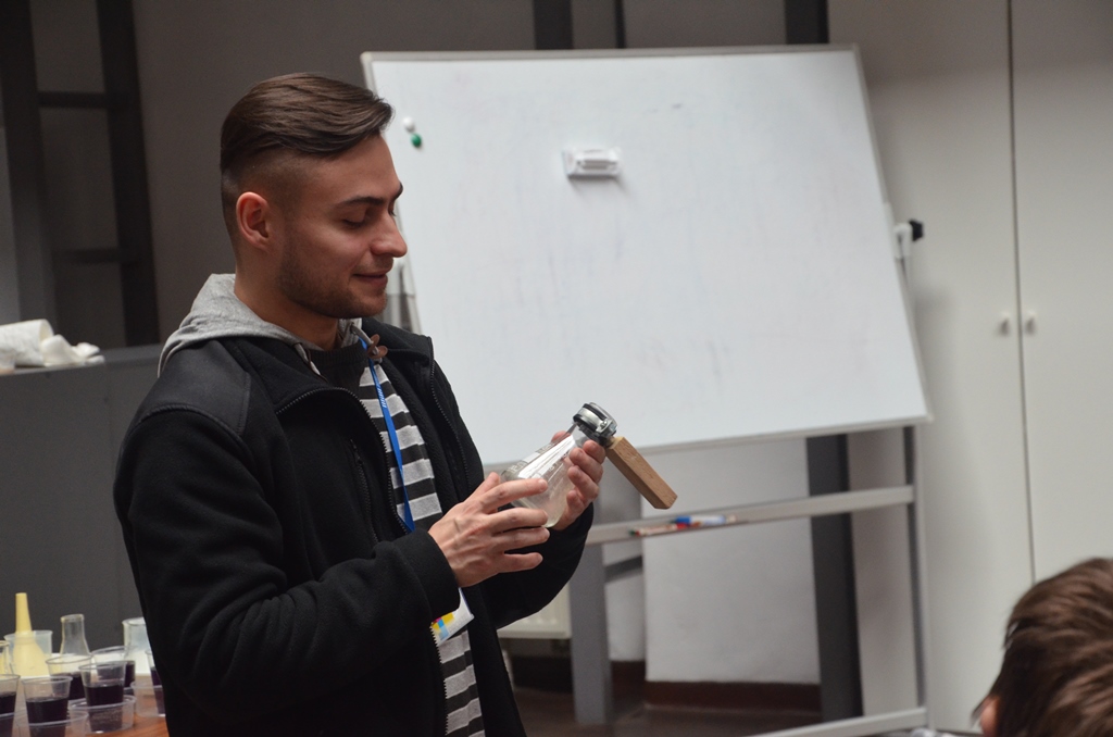 Na warsztatach „Magia w kuchni” uczniowie przeprowadzili doświadczenia z różnymi produktami, jakie możemy znaleźć w kuchni. Dowiedzieli się jak zmieścić jajko w butelce z wąską szyjką, sprawdzili jaki kolor ma sok z czerwonej kapusty i co lubią drożdże. Na zakończenie zrobili niegroźny wulkan, korzystając z domowych zapasów.