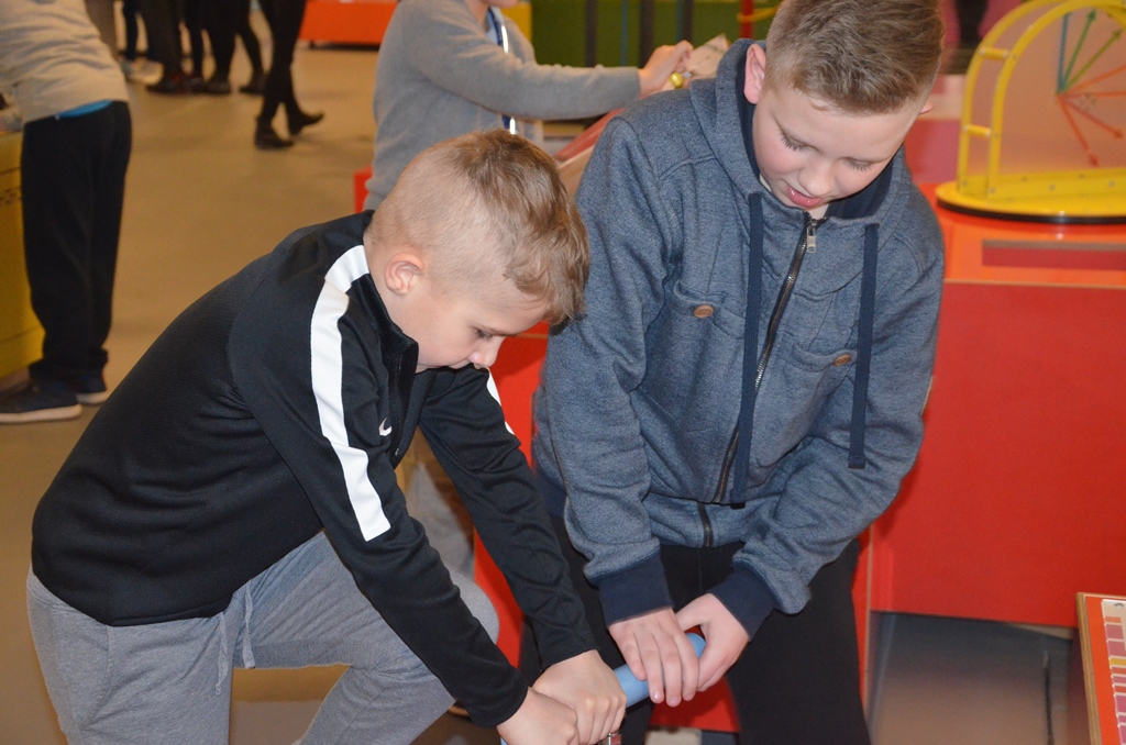 –Wystawy wymykają się wszelkim muzealnym zakazom nakazując aktywny udział wszystkich zmysłów z dotykiem na czele. Tutaj zwiedzanie oznacza dobrą zabawę i… spory wysiłek fizyczny- mówi nauczycielka przyrody w SP2 -Uczniowie samodzielnie mogli podnieść 115 – kilogramowy silnik używając wielokrążków, pojeździć rowerem o kwadratowych kołach, zbudować basztę czy podnieść windę napędzaną kołem deptakowym. Dzięki takim lekcjom kształtujemy umiejętności logicznego myślenia, wnioskowania, zwiększamy kreatywność i uczymy pracy zespołowej