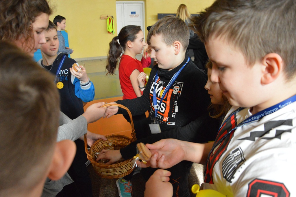 Zanim tegoroczny finał DZIAŁAJMY RAZEM dobiegł końca, na wszystkich czekała jeszcze jedna niespodzianka. Uczniowie otrzymali po dwa symboliczne serduszka, bo w codziennych relacjach z innymi nie należy zapomnieć o tym, że życzliwość jest fajna. „Jedno jest dla Ciebie, drogi kolego, koleżanko, a drugie podaruj komuś. Być może komuś, kogo chcesz za coś przeprosić; być może komuś, kto potrzebuje usłyszeć od drugiego człowieka dobre słowo; być może komuś, komu chcesz za coś podziękować; albo komuś, kogo po prostu lubisz i chciałbyś mu zrobić miłą niespodziankę. Powiedz swojemu koledze, koleżance: „dobrze, że jest.”- mówili uczniowie z klasy Va prowadzący finał, podczas gdy szkolni wolontariusze z koszami przepełnionymi pierniczkami w kształcie serduszek, wręczali je zgromadzonym na sali uczniom i nauczycielom, bo przecież to życzliwość otwiera drzwi do ludzkich serc.