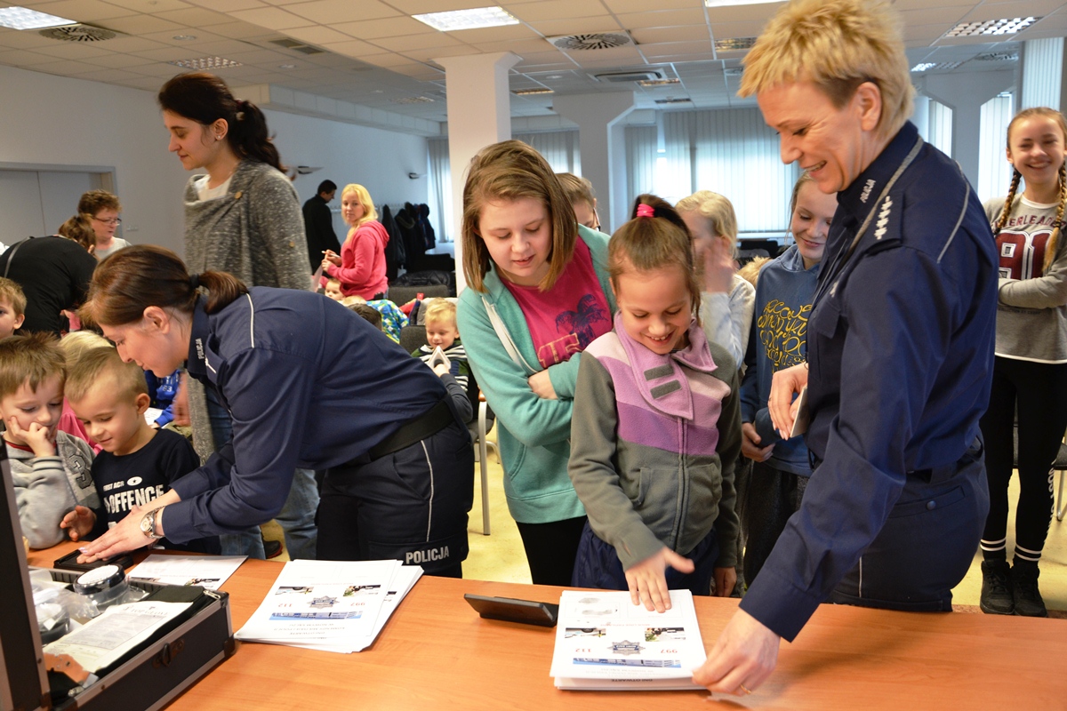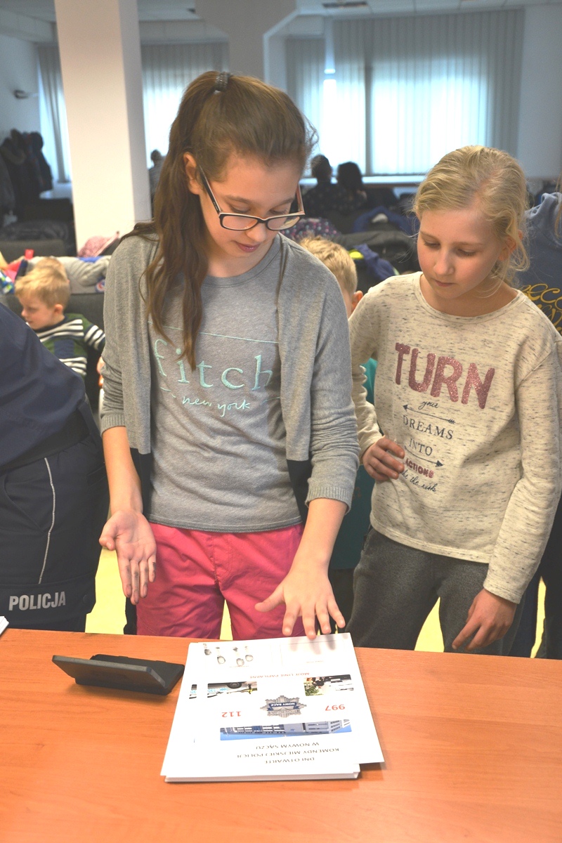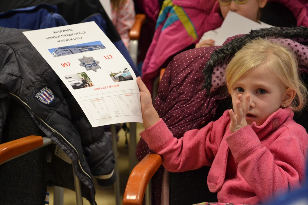 W ramach Dni Otwartych sądeckiej Policji dzieci miały okazję zobaczyć jak wygląda komenda od środka oraz przyjrzeć się pracy policjantów od tzw. „przysłowiowej kuchni”. Mali słuchacze aktywnie uczestniczyli w prelekcji prowadzonej przez policjantów Wydziału Prewencji – asp. szt. Barbarę Leśniak oraz mł. asp. Barbarę Przychocką-Serafin. Chórem odpowiedziały, że policjanci są po to, by pomagać! Z uwagą przyglądali się jak technik kryminalistyki – mł. asp. Wojciech Gacoń prezentował sposób ujawniania śladów linii papilarnych na miejscu zdarzenia. Ponadto każdy uczestnik zostawił odciski swoich palców lub dłoni na dyplomie, który mógł zabrać do domu na pamiątkę wizyty w komendzie.