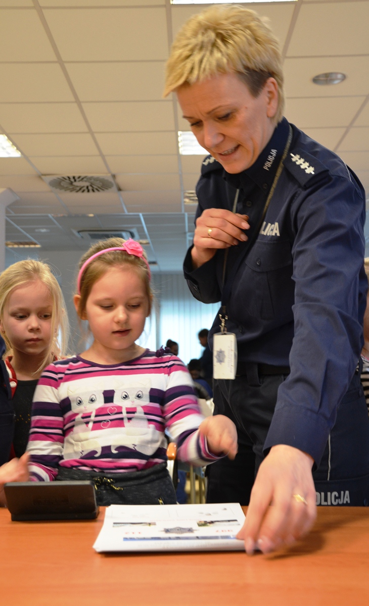 Przygoda na komendzie zakończyła się spotkaniem z nadkom. Bogusławem Żytkowiczem z Wydziału Ruchu Drogowego, który przypomniał dzieciom oraz ich opiekunom zasady bezpiecznego poruszania się po jezdni. Mali goście zobaczyli alkomat oraz przyrząd do pomiaru prędkości.