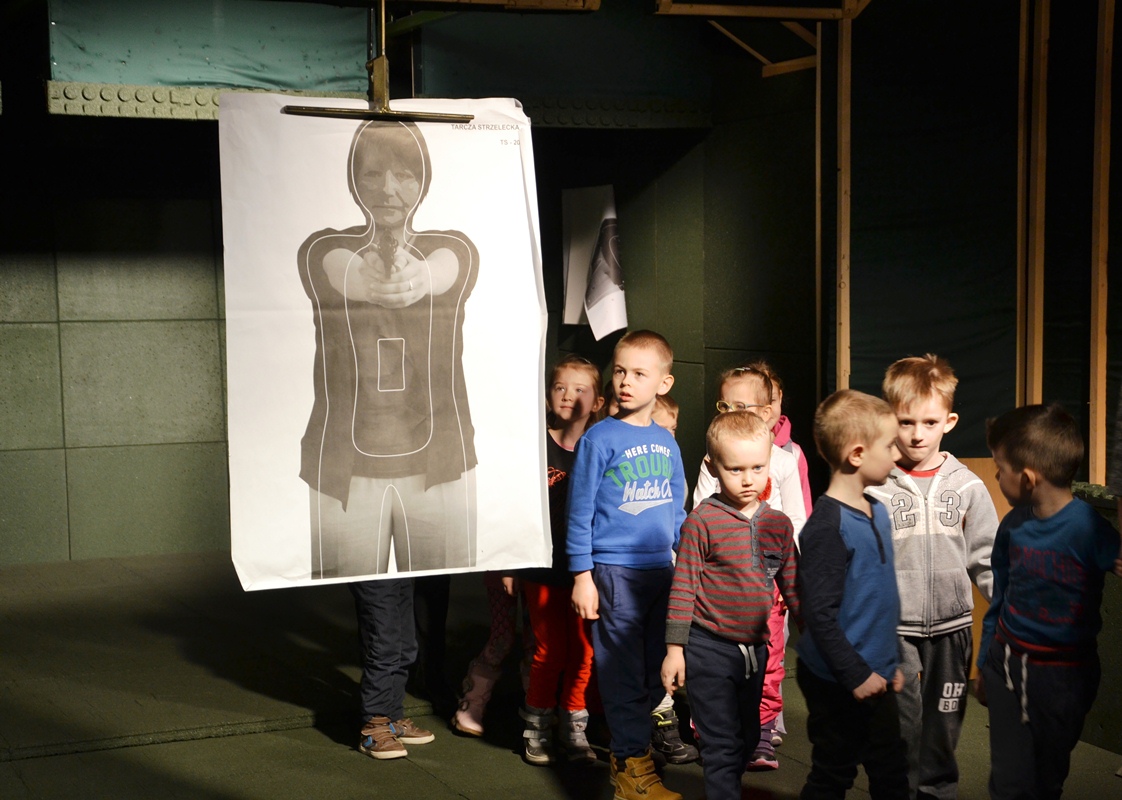 Mali goście nie mogli doczekać się wizyty na strzelnicy. Byli pod wrażeniem tarczy, do której podczas ćwiczeń strzelają policjanci. Kilkoro dzieci przymierzyło nawet ochronne nauszniki. Uczestnicy zdziwili się, gdy asp. szt. Andrzej Żelasko poinformował ich, że policjanci, podobnie jak uczniowie w szkole, też są oceniani za swoje umiejętności sprawnościowe.