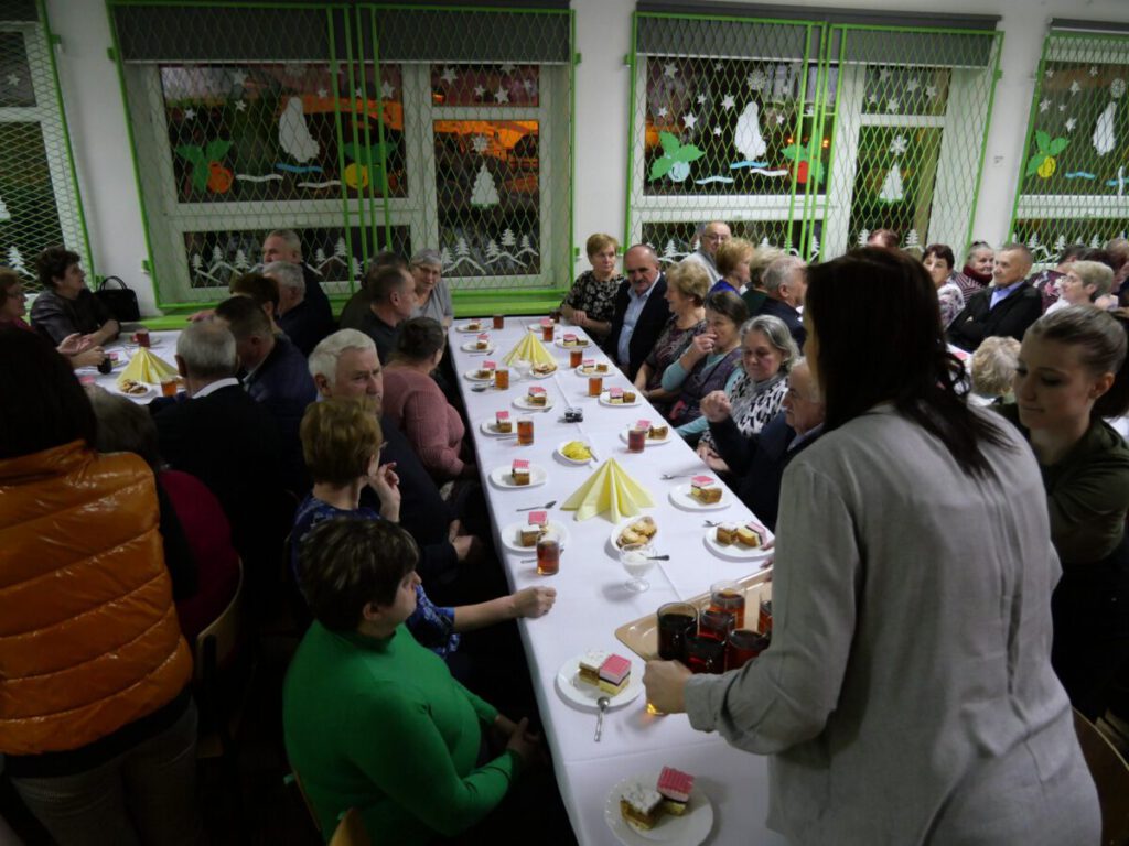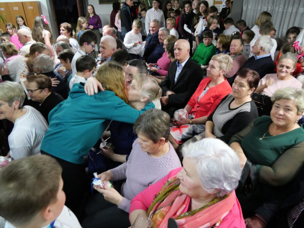 Pani Dyrektor Teresa Szewczyk powitała dostojnych Gości i złożyła im życzenia. Po występach wnuczki i wnukowie zaśpiewali Babciom i Dziadkom „100 lat” i obdarowali ich własnoręcznie wykonanymi ozdobami z gliny. Potem był poczęstunek przygotowany przez Rodziców. Było wiele uśmiechów i łez wzruszenia.