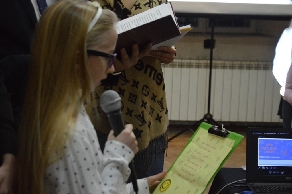 Podczas uroczystego wernisażu prac plastycznych laureaci oraz ich rodzice wysłuchali utworów poetyckich dotyczących kultury szacunku w sieci napisanych przez uczniów Szkoły Podstawowej nr 2, obejrzeli prezentacje i gry multimedialne wykonane przez nagrodzonych uczniów, które dotyczyły bezpieczeństwa w Internecie i kultury szacunku w sieci. W obecności rodziców, wręczono nagrody i dyplomy laureatom wszystkich konkursów związanych z DBI.