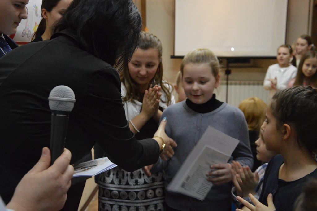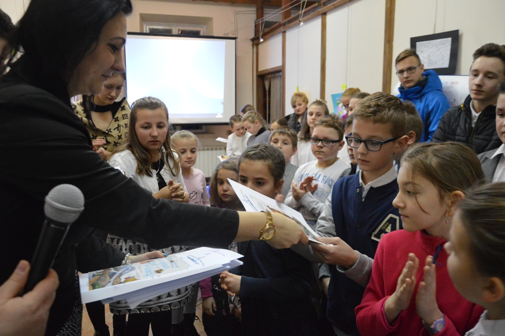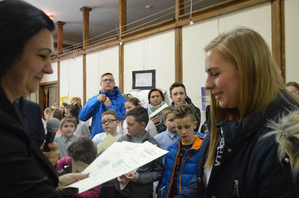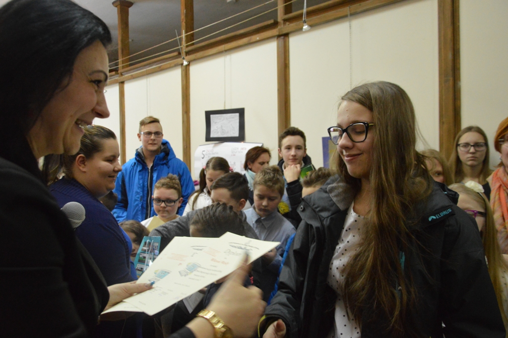 Obecna była Wioletta Nowak, dyrektor szkoły, szkolni koordynatorzy inicjatywy, a także Ewelina Wiśniewska, kierownik „Galerii pod 5″.