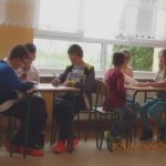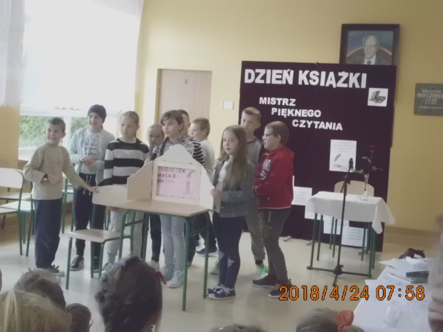 Klasy młodsze natomiast (0-III) przedstawiały w formie rysunkowego teatrzyku (kamishibai) fragment jednej z książek. I miejsce za zilustrowanie i przedstawienie teatrzyku na podstawie fragmentu książki przypadło ex aequo klasie O i III, drudzy z kolei byli uczniowie z klasy I.