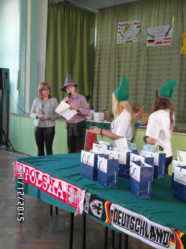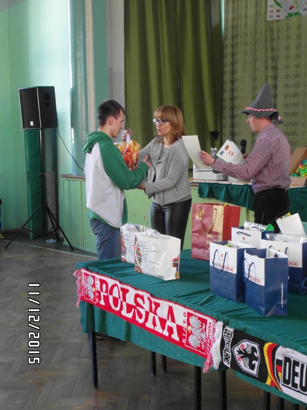 Dyrektor Zespołu Szkół w Marcinkowicach, Alicja Wąsowicz wraz z germanistą Grzegorzem Damasiewiczem, koordynatorem i pomysłodawcą całej inicjatywy, wręczyła laureatom nagrody rzeczowe i pamiątkowe dyplomy.  Wśród osób nagrodzonych w konkursie znaleźli się:
