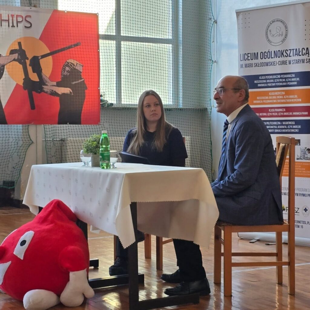 Z tej okazji uczniowie klasy 3A zorganizowali niezwykłe spotkanie z osobą, dla której pomaganie stało się życiową misją. Gościem wydarzenia był Andrzej Lis, starosądeczanin i rekordzista świata wpisany do Księgi Rekordów Guinnessa, który oddał już ponad 100 litrów krwi, a także podarował szpik kostny, ratując zdrowie i życie innych ludzi.