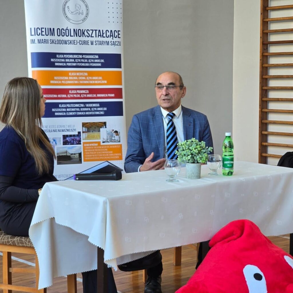 Wywiad z gościem przeprowadziła Ilona Stawiarska, a w organizację wydarzenia aktywnie zaangażował się Klub Impuls, działający w Liceum Ogólnokształcącym w Starym Sączu.