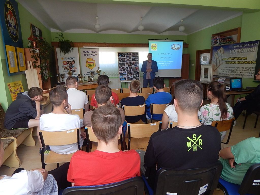 –Przedsięwzięcie miało na celu zapoznanie przyszłych uczestników z formą działalności i ofertą edukacyjną jednostki. Komendant 6 – 34 Hufca Pracy w Starym Sączu – mówi Marian Potoniec, który przywitał wszystkich zebranych oraz podziękował za przybycie. Młodzież wzięła udział w prezentacji multimedialnej, za pomocą której przybliżone zostały metody i formy kształcenia oraz wychowania, współpraca z partnerami lokalnymi, regionalnymi, baza lokalowa, jak i projekty dofinansowane z Unii Europejskiej, realizowane na terenie jednostki.